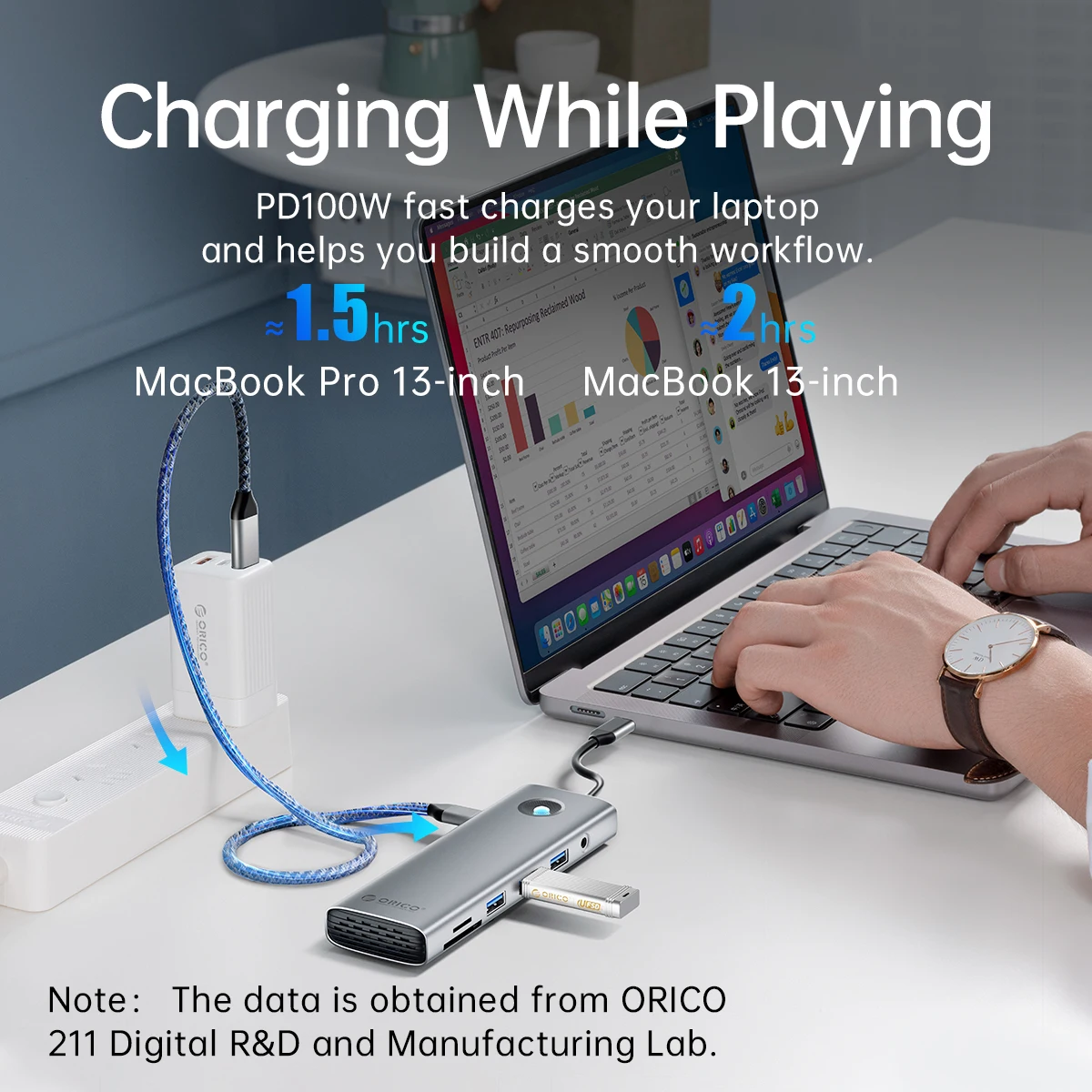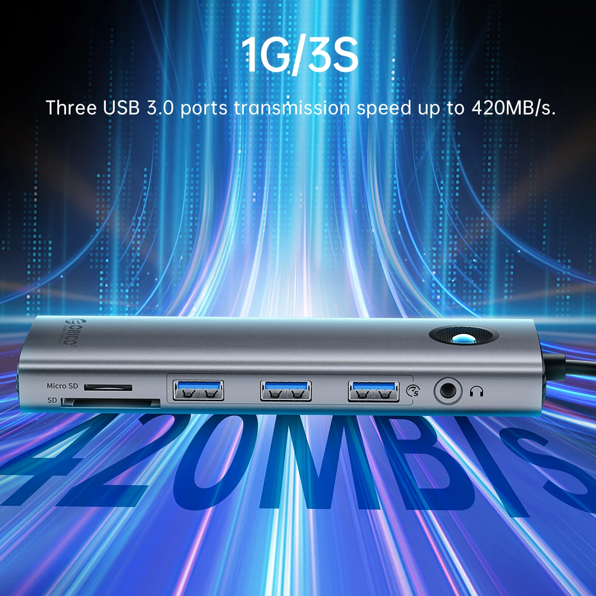 Comprar ORICO-estación de acoplamiento 5-10 en 1, concentrador tipo C a 4K60Hz, adaptador USB 3,0 compatible con HDMI, carga RJ45 PD100W para Macbook Pro Air y portátil