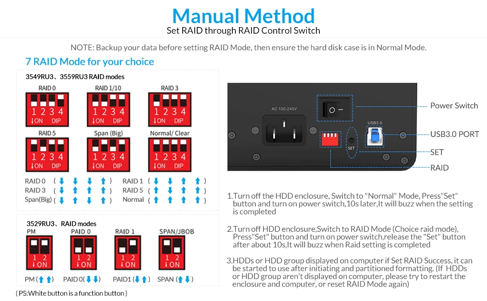 2 Bay USB3.0 con Raid con apoyo 32TB