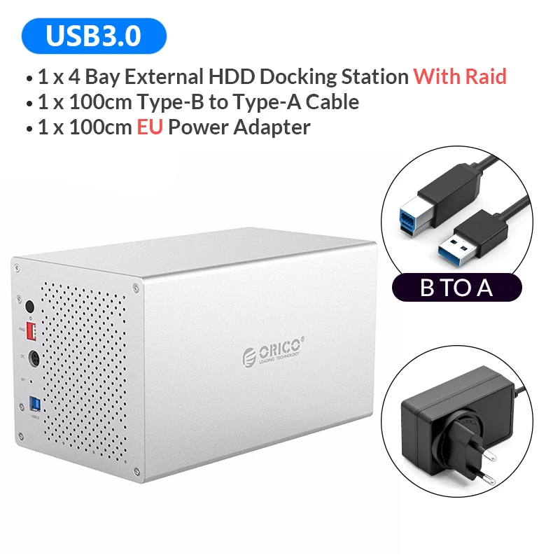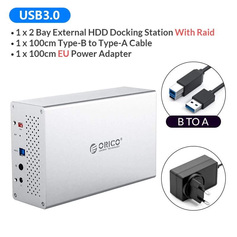 Comprar ORICO-estación de acoplamiento de aluminio para disco duro, accesorio Multi Bay de 3,5 pulgadas, SATA a USB3.0, refrigeración en forma de panal con 7 modos Raid