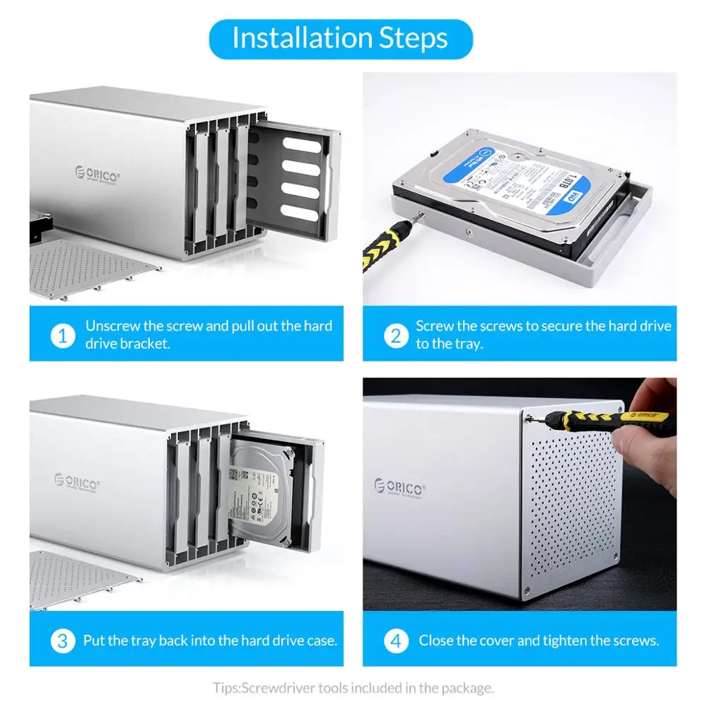 Comprar ORICO-estación de acoplamiento de aluminio para disco duro, accesorio Multi Bay de 3,5 pulgadas, SATA a USB3.0, refrigeración en forma de panal con 7 modos Raid