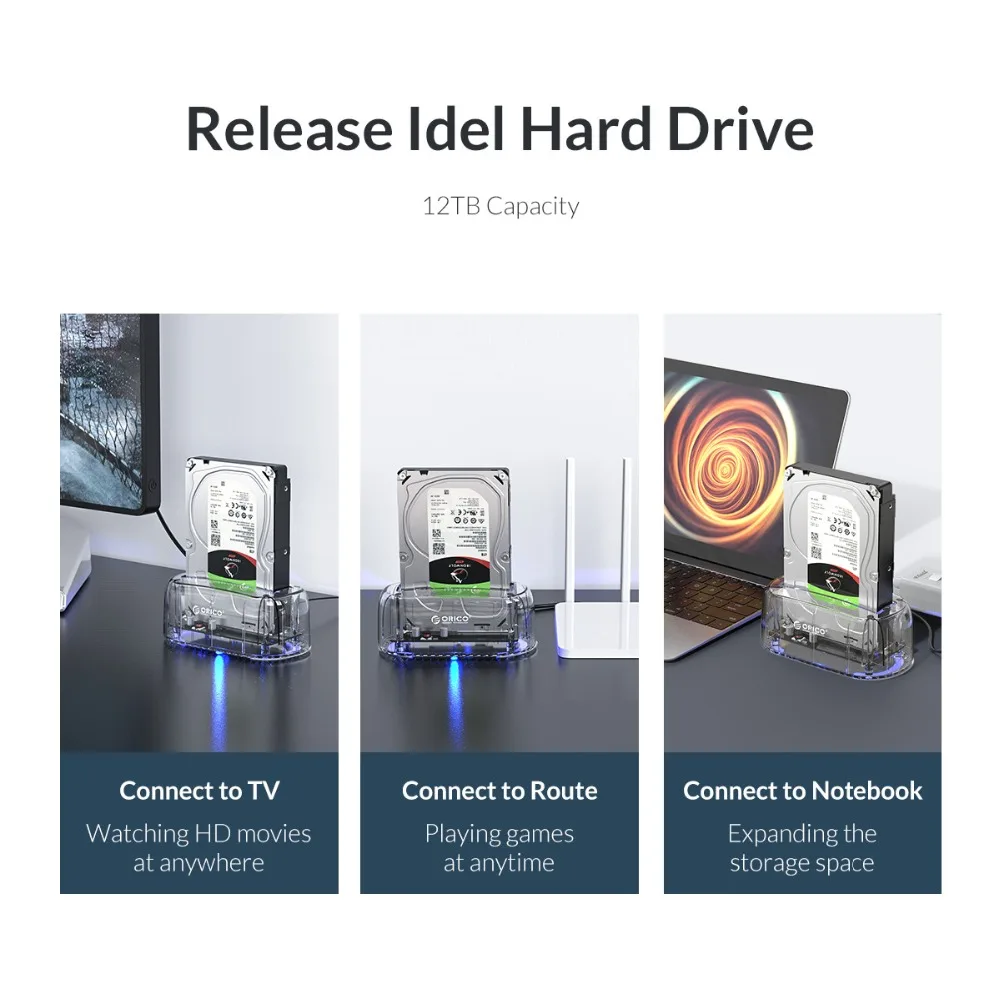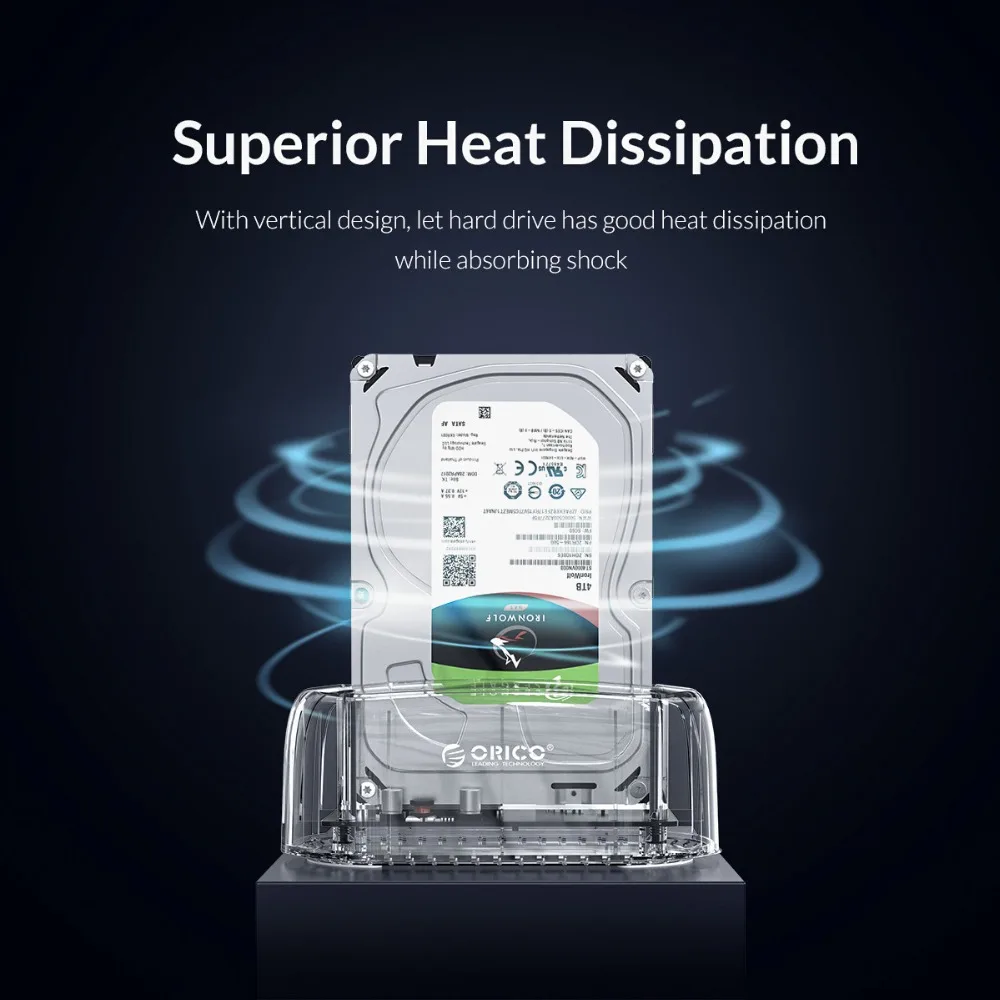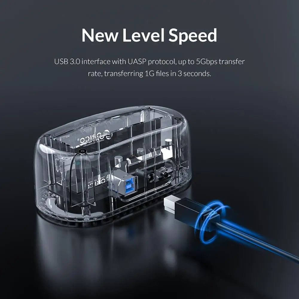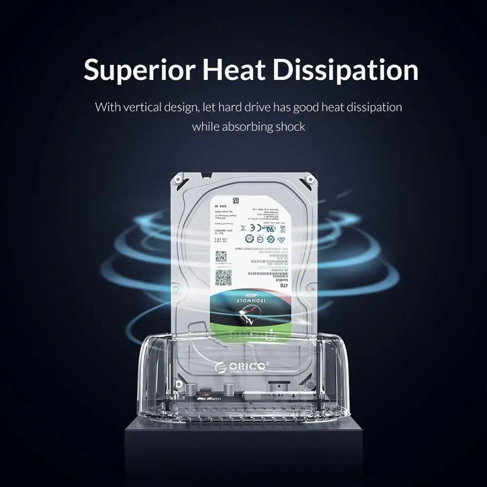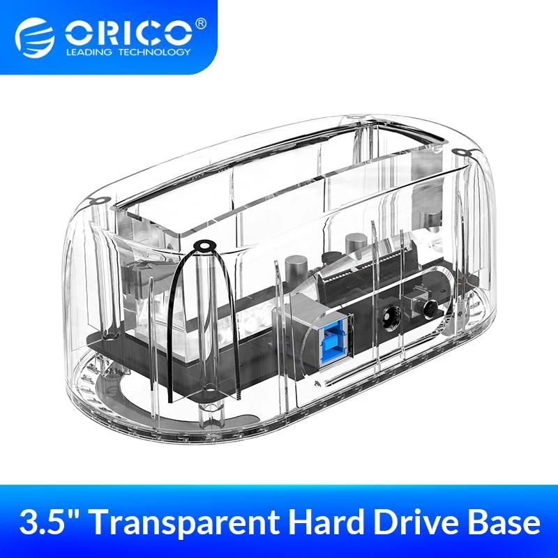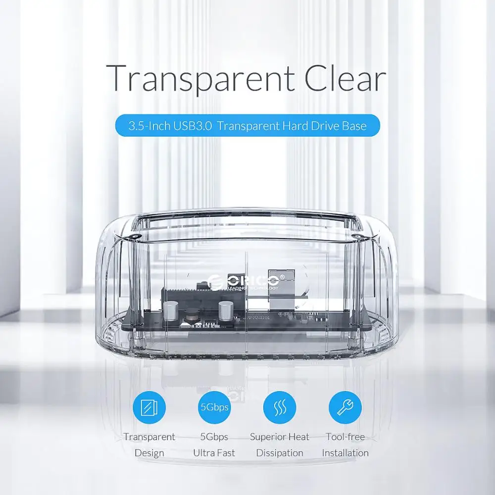 Comprar ORICO-estación de acoplamiento para disco duro, carcasa transparente de 3,5 pulgadas, HDD, SSD, USB 3,0, 5Gbps a SATA 3,0, con adaptador de corriente de 12V