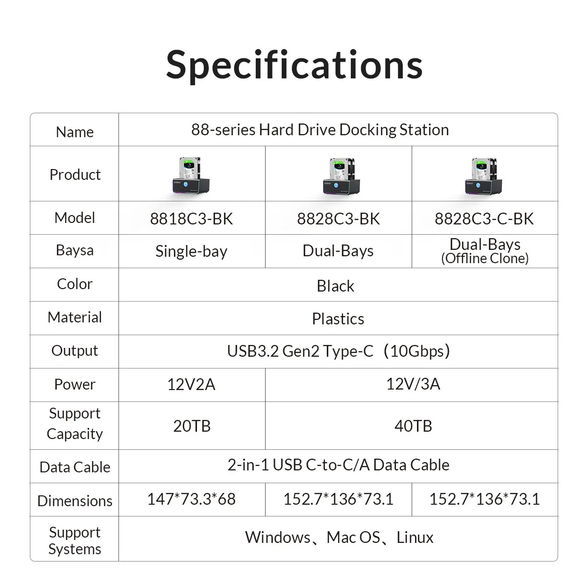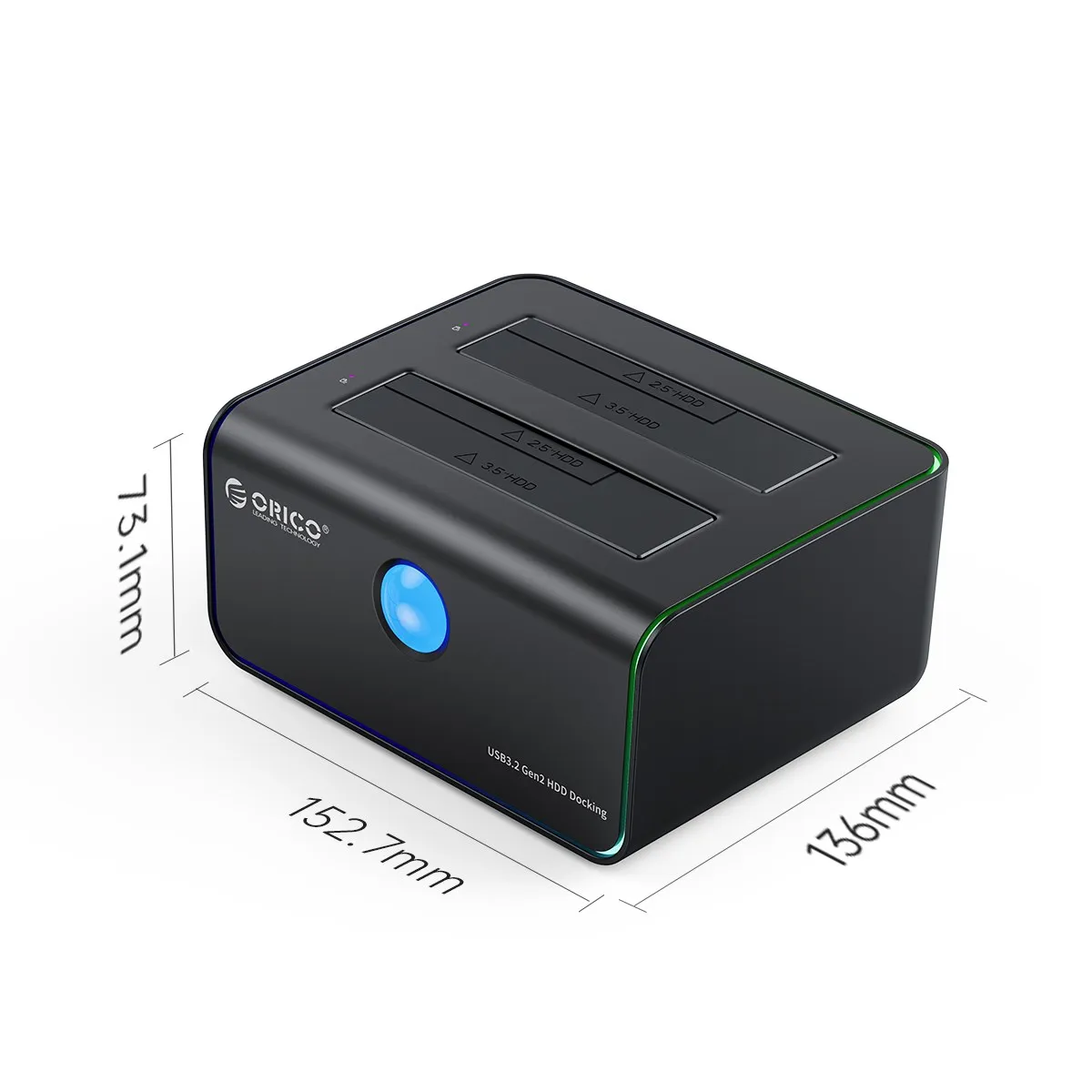 Comprar ORICO-estación de acoplamiento de disco duro para entusiastas del juego, carcasa de clon sin conexión, RGB Light 2-bay tipo C, 10gbps