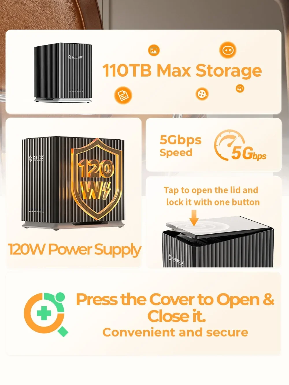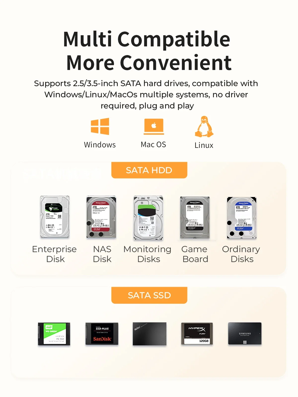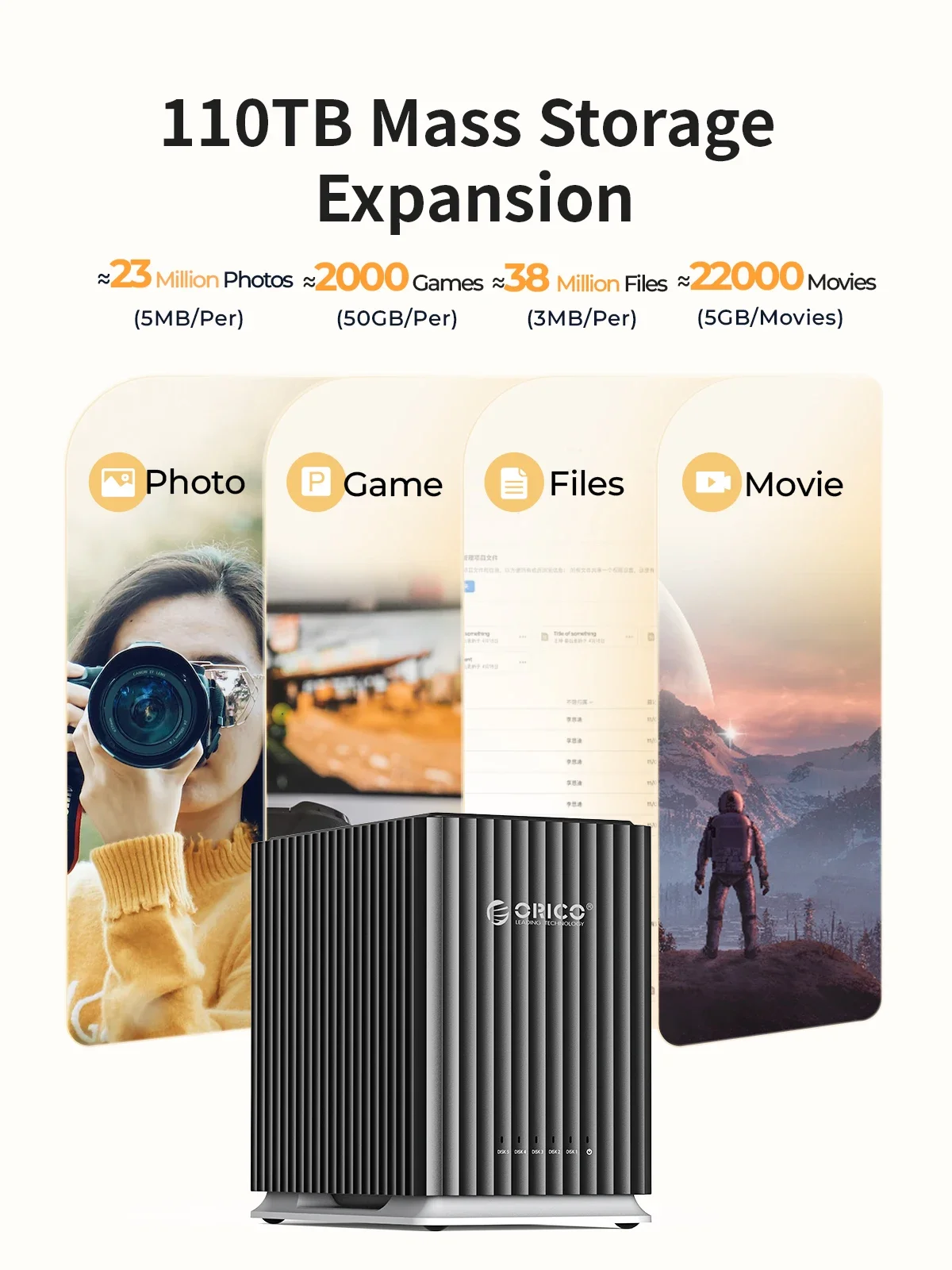 Comprar ORICO-estación de acoplamiento para disco duro externo, carcasa de SATA a tipo C con clon para SSD de 3,5/2,5 pulgadas, 5 bahías, 3,5 pulgadas