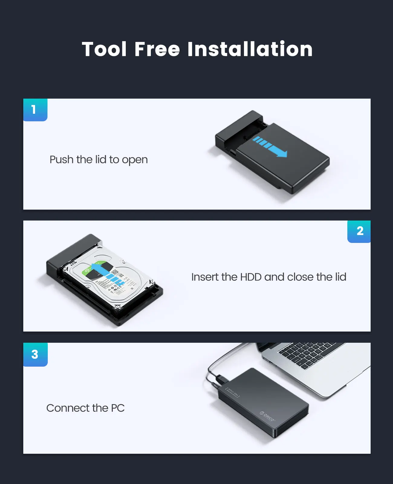 Comprar ORICO-estación de acoplamiento de disco duro SATA a USB 3,0, adaptador de carcasa para SSD 2,5, 3,5, caja de disco duro, herramienta gratuita