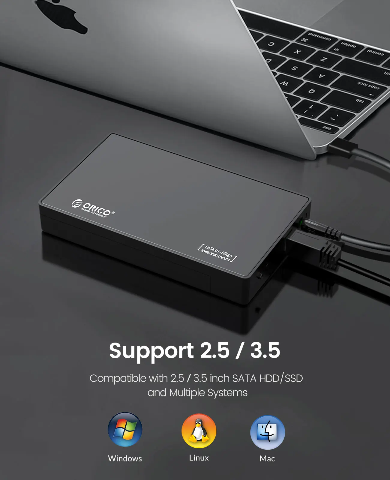 Comprar ORICO-estación de acoplamiento de disco duro SATA a USB 3,0, adaptador de carcasa para SSD 2,5, 3,5, caja de disco duro, herramienta gratuita