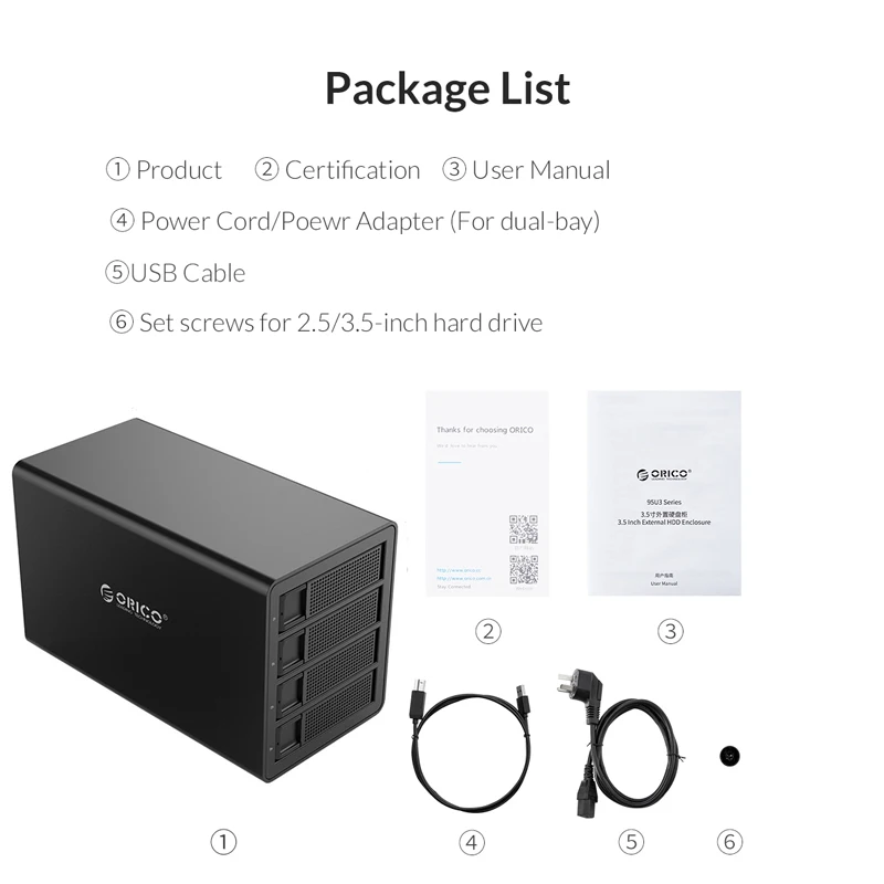 ORICO Aluminum Alloy 4 bay 3.5" USB3.0 SATA External Hard Drive Enclosure