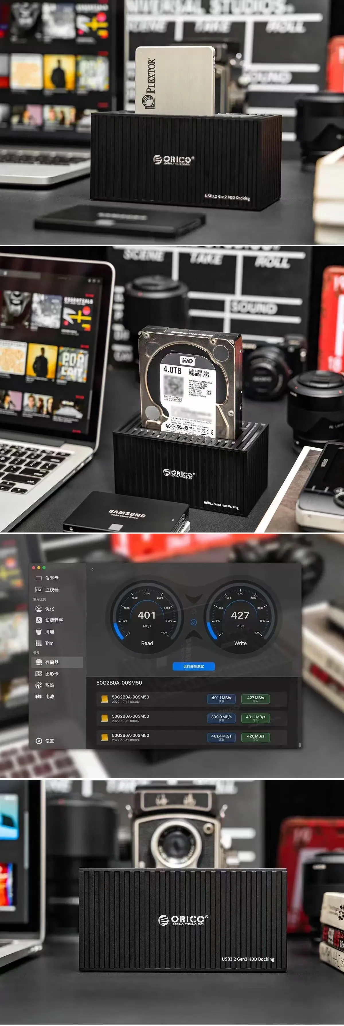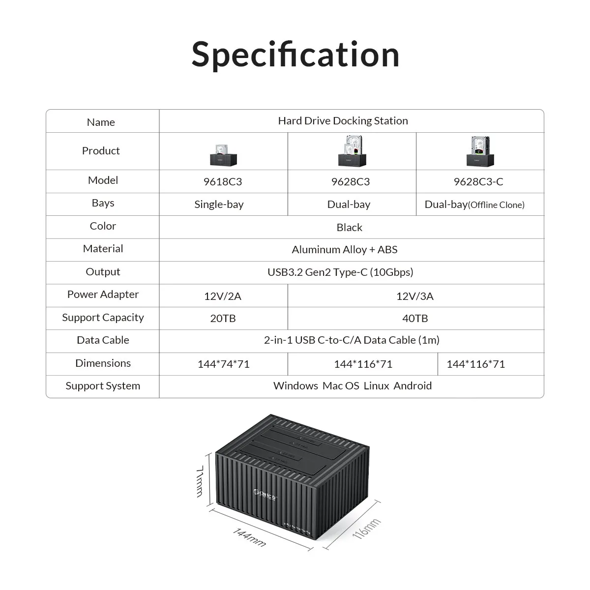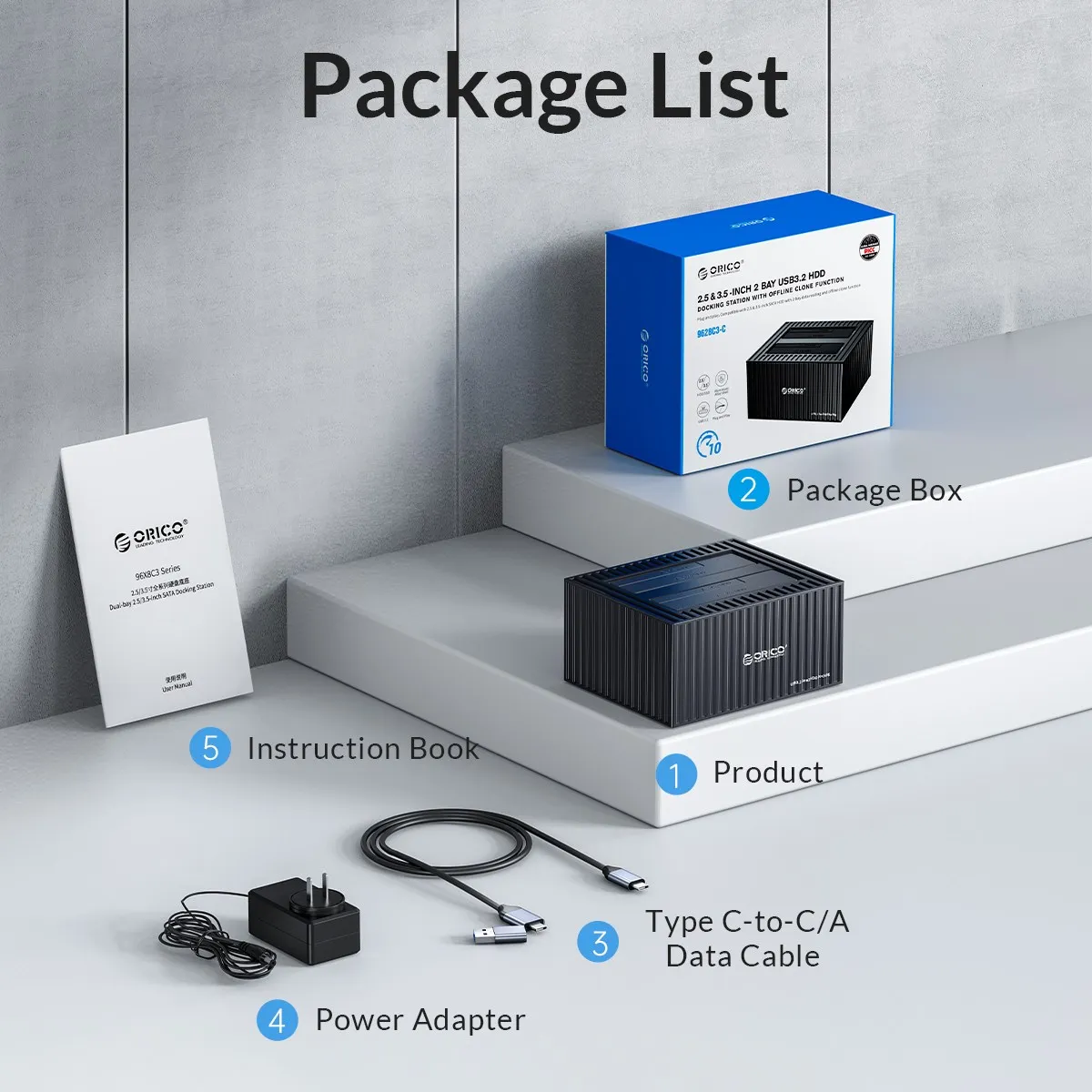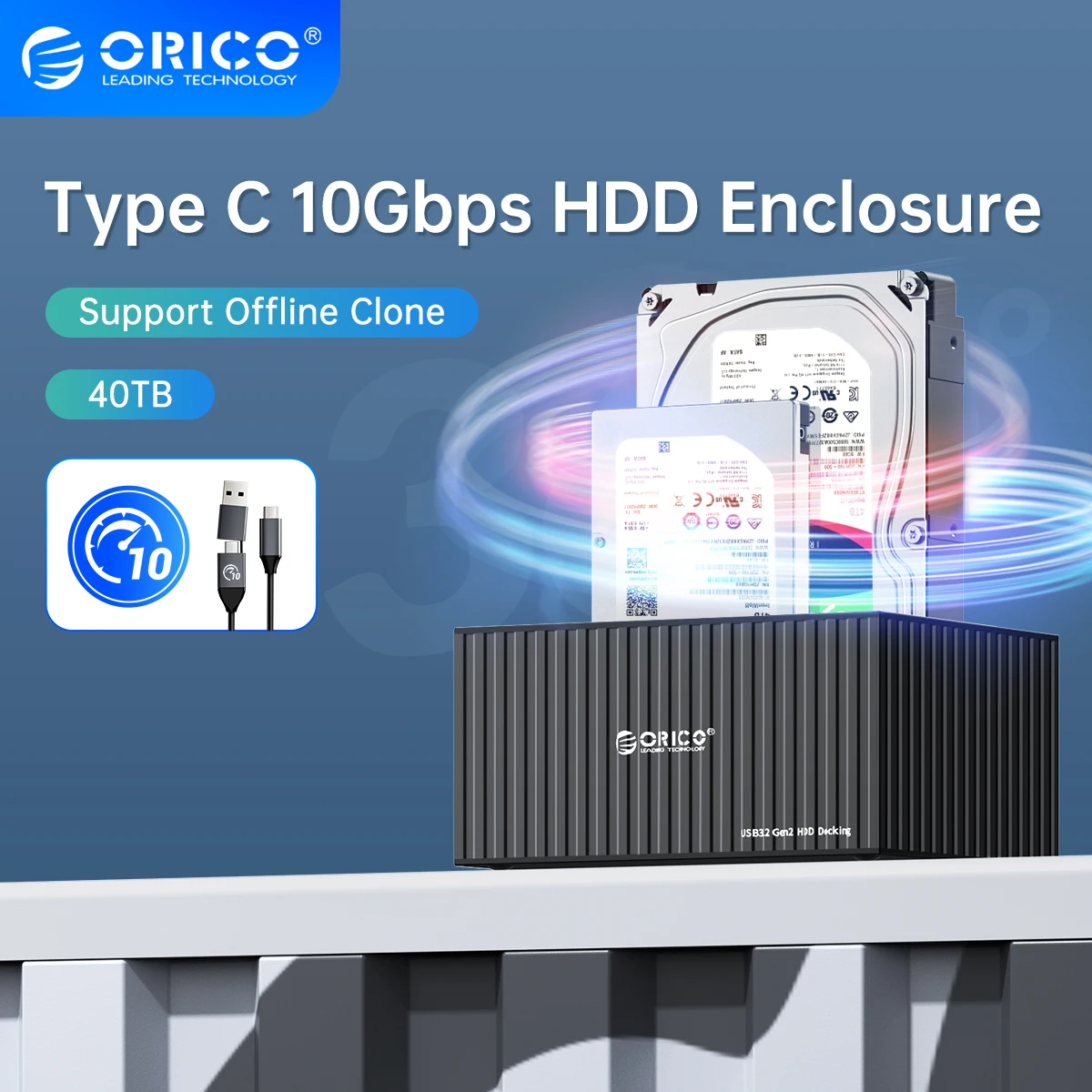 Comprar ORICO-estación de acoplamiento de disco duro tipo C, dispositivo de doble bahía de 3,5 pulgadas, 10gbps, para HDD/SSD de 2,5/3,5 pulgadas, 12V, 3A de potencia, diseño de contenedor UASP
