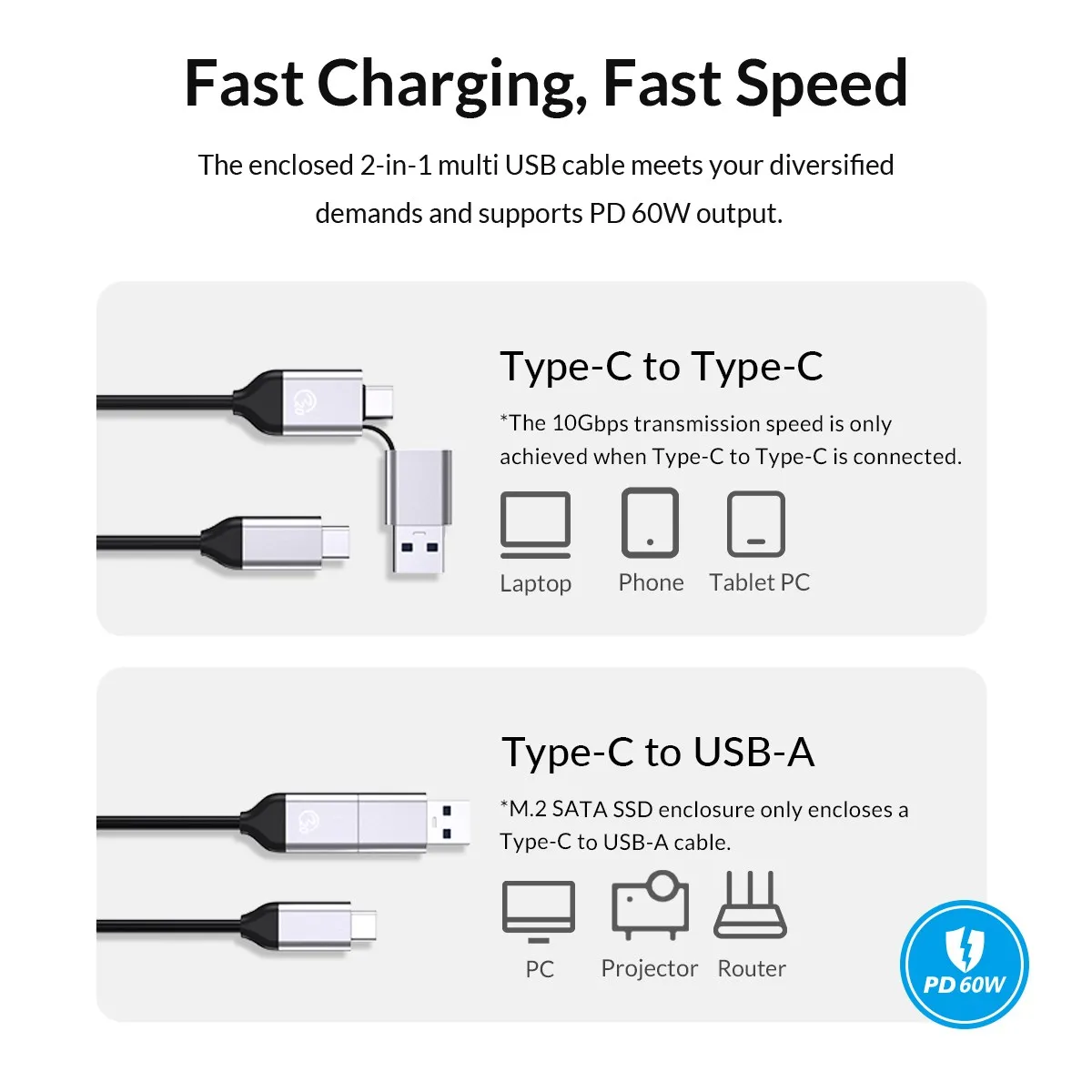 El cable multi USB 2 en 1 cerrado satisface sus demandas diversificadas y admite salida PD 60W