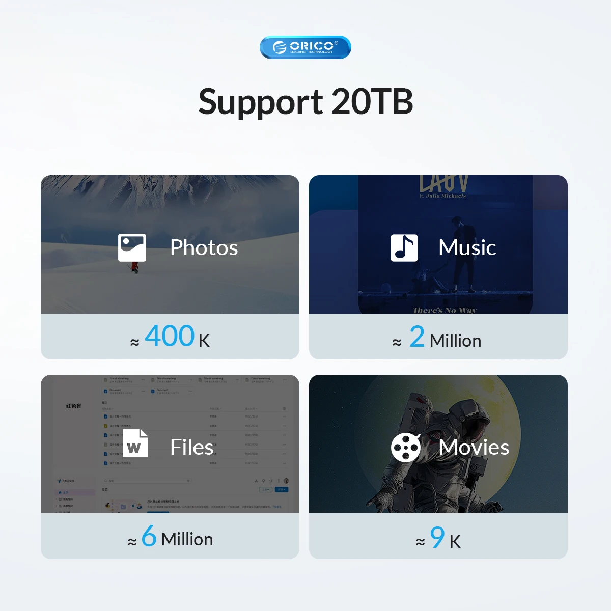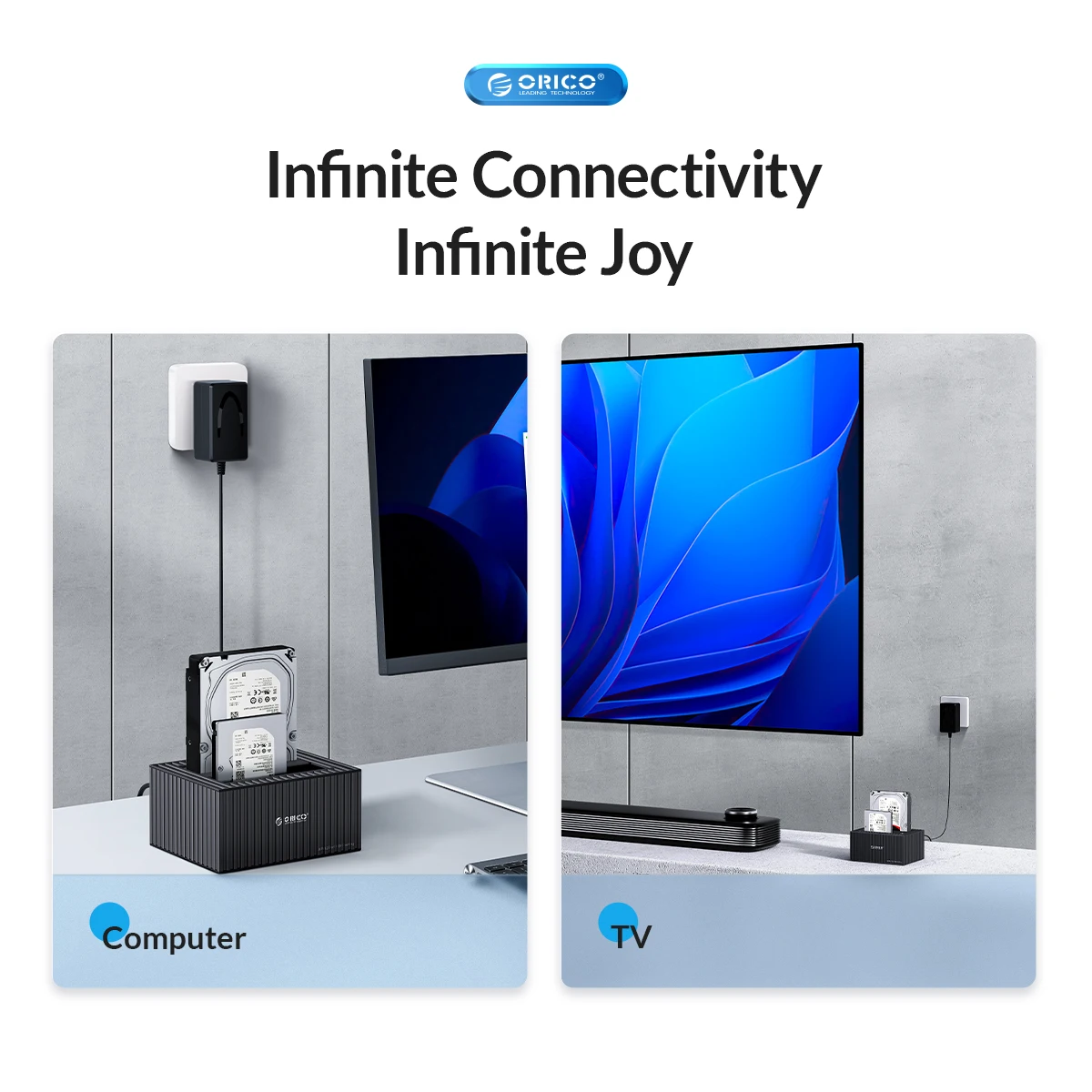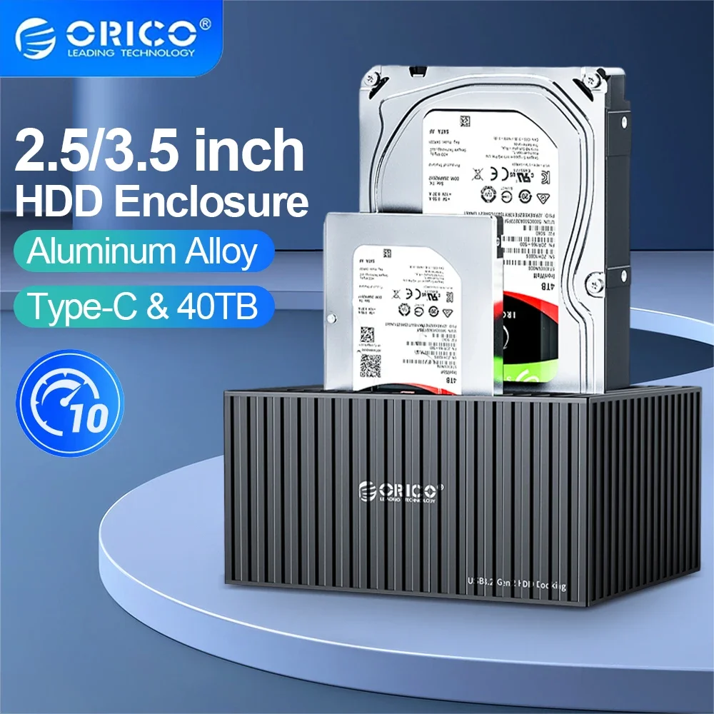 Comprar ORICO Estación de acoplamiento de disco duro tipo C de doble bahía de 3,5 pulgadas de 10 Gbps para HDD/SSD de 2,5/3,5 "con adaptador de corriente 12V3A UASP 40TB máx.