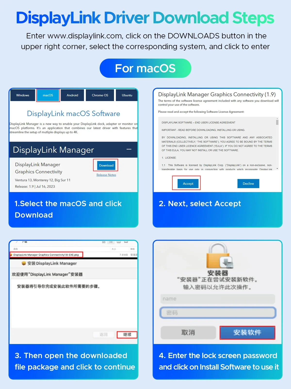 Pasos de descarga del controlador DisplayLink