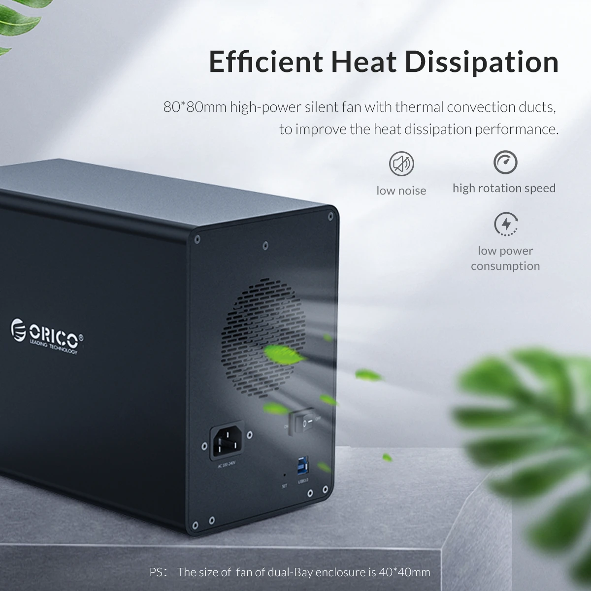 Comprar ORICO Estación de acoplamiento HDD externa de 2 bahías con chip dual Caja de disco duro de alimentación incorporada de 150 W para disco duro USB3.0 de 2,5/3,5 pulgadas