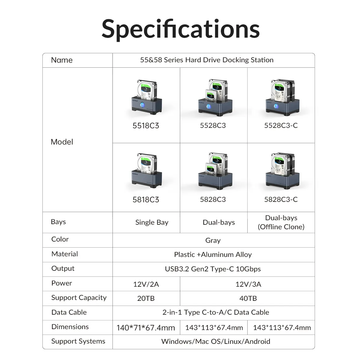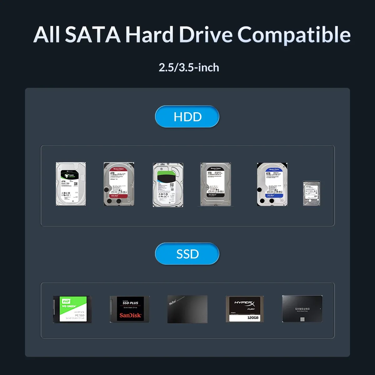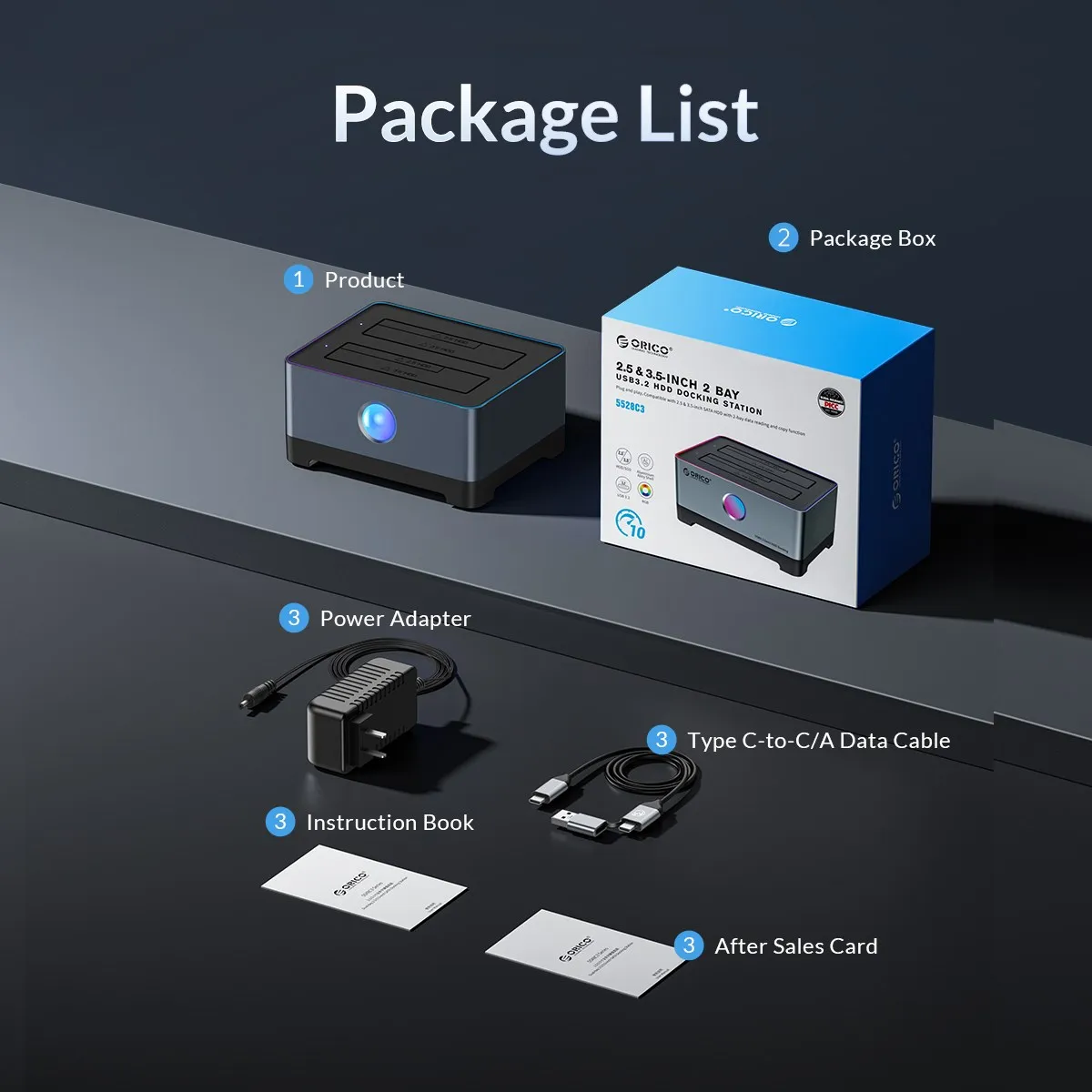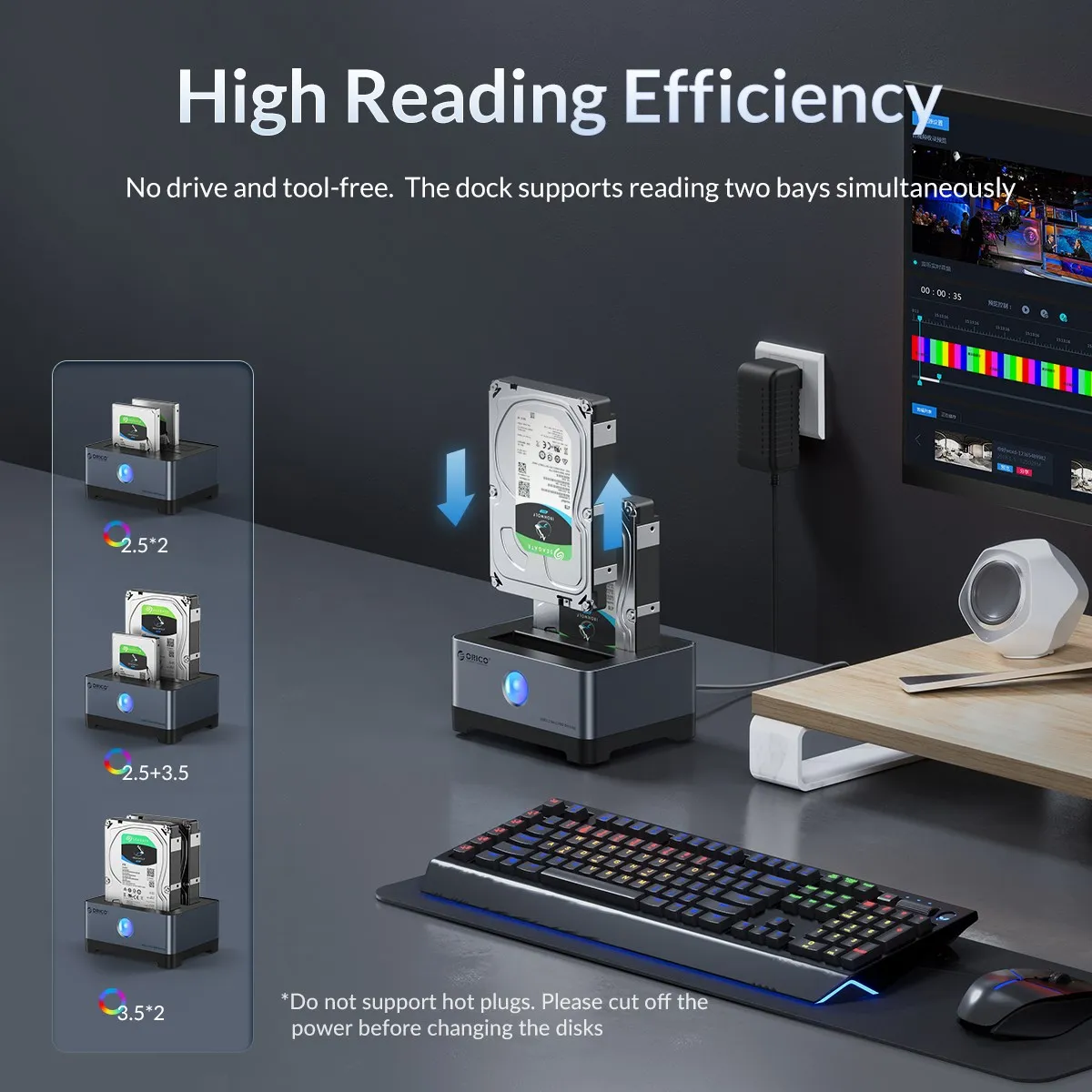 Comprar ORICO-estación de acoplamiento para ordenador portátil, carcasa de aluminio con luz RGB tipo C, 10Gbps, disipación de calor más fuerte, HDD de 2,5/3,5 pulgadas, para entusiastas del juego
