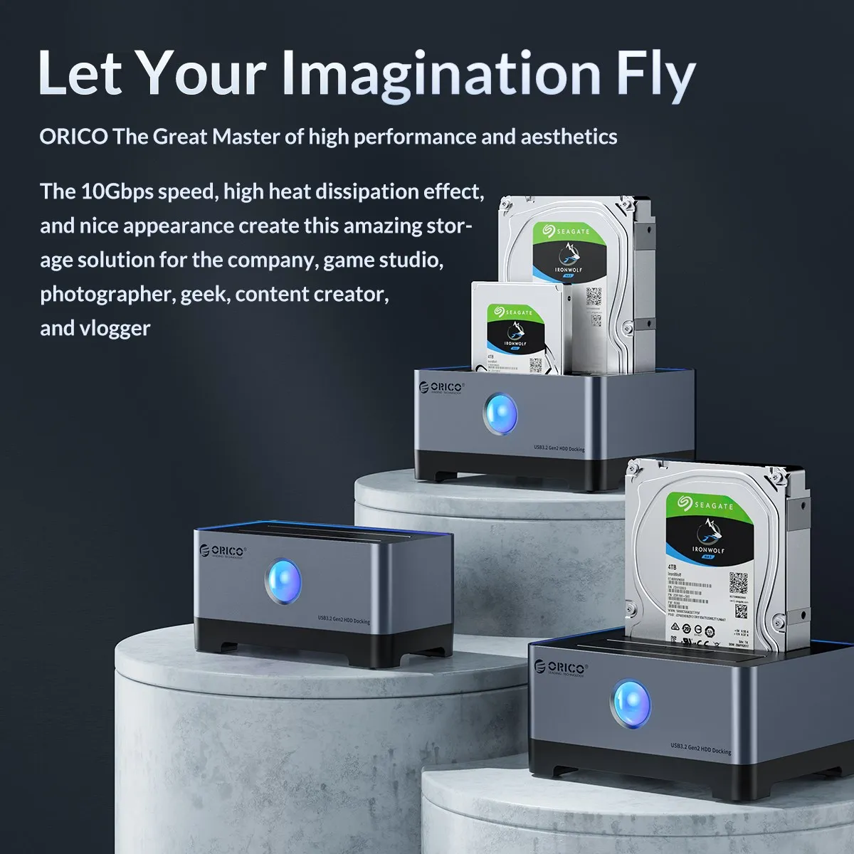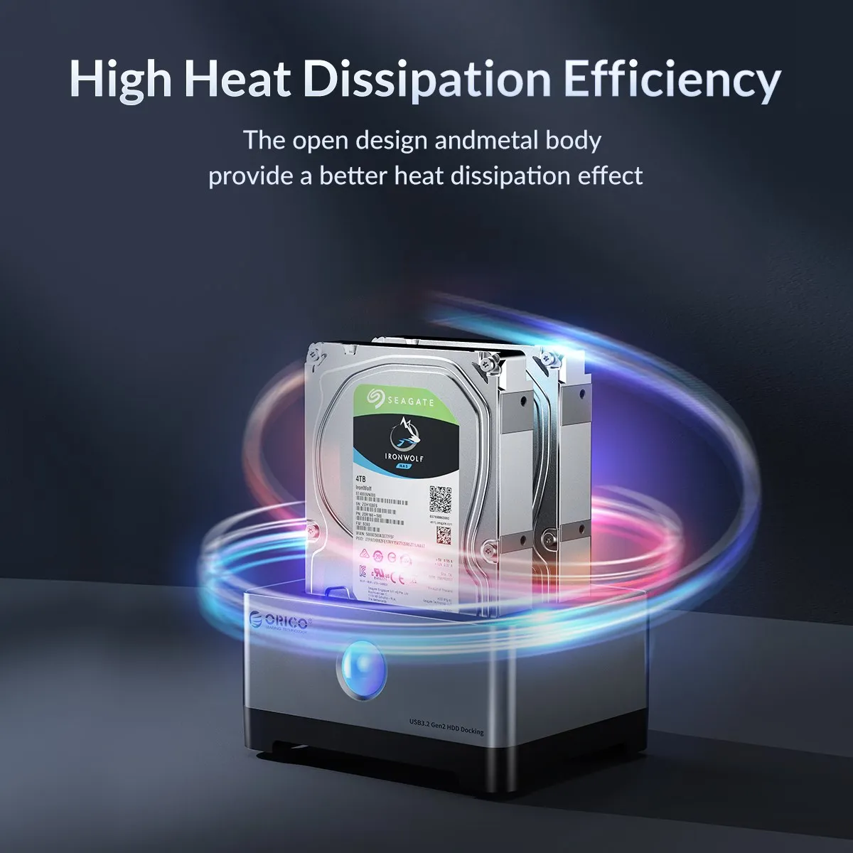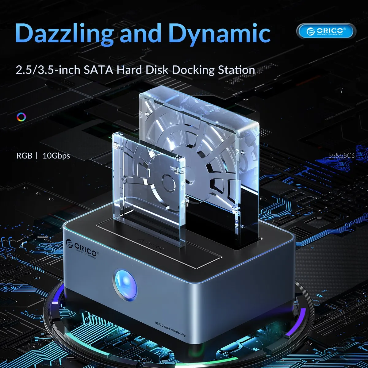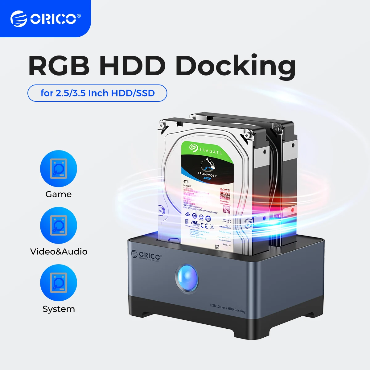 Comprar ORICO-estación de acoplamiento para ordenador portátil, carcasa de aluminio con luz RGB tipo C, 10Gbps, disipación de calor más fuerte, HDD de 2,5/3,5 pulgadas, para entusiastas del juego