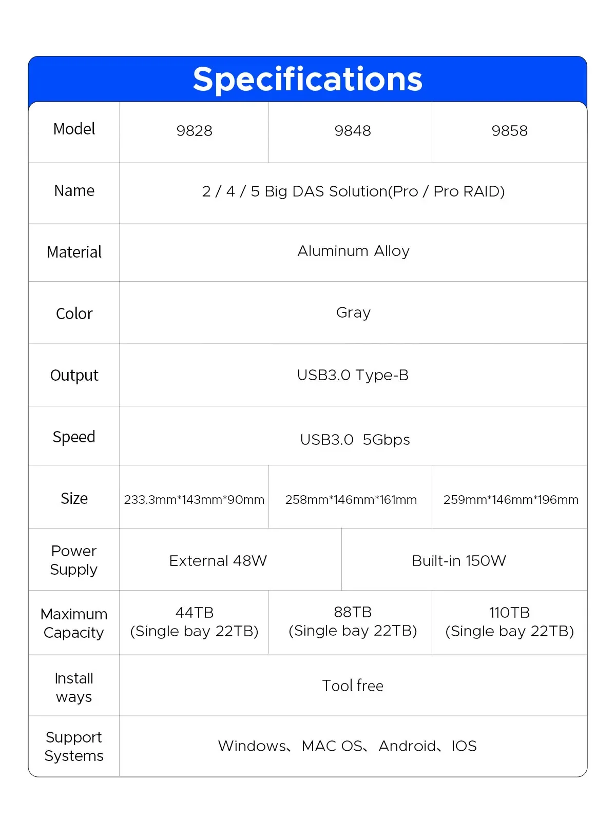 Comprar ORICO-estación de acoplamiento RAID HDD de 3,5 ", carcasa de aluminio, multibahído USB 3,0, disco duro extemal de 5Gbps con ventilador de refrigeración, 7 modos RAID