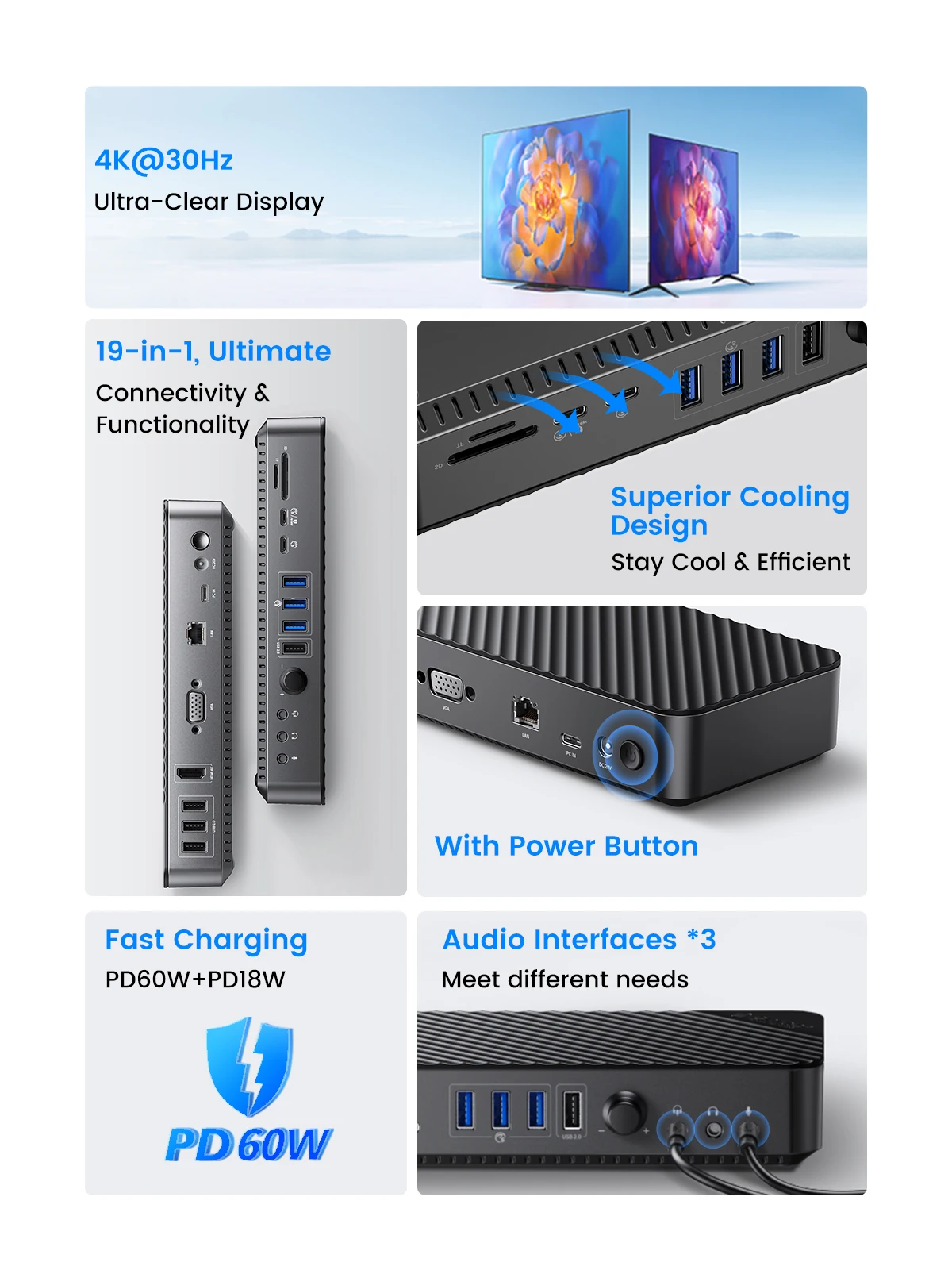Máxima conectividad y funcionalidad, PD/USB 3,0/USB 2,0/HDMI-com/VGA/diferentes interfaces de audio