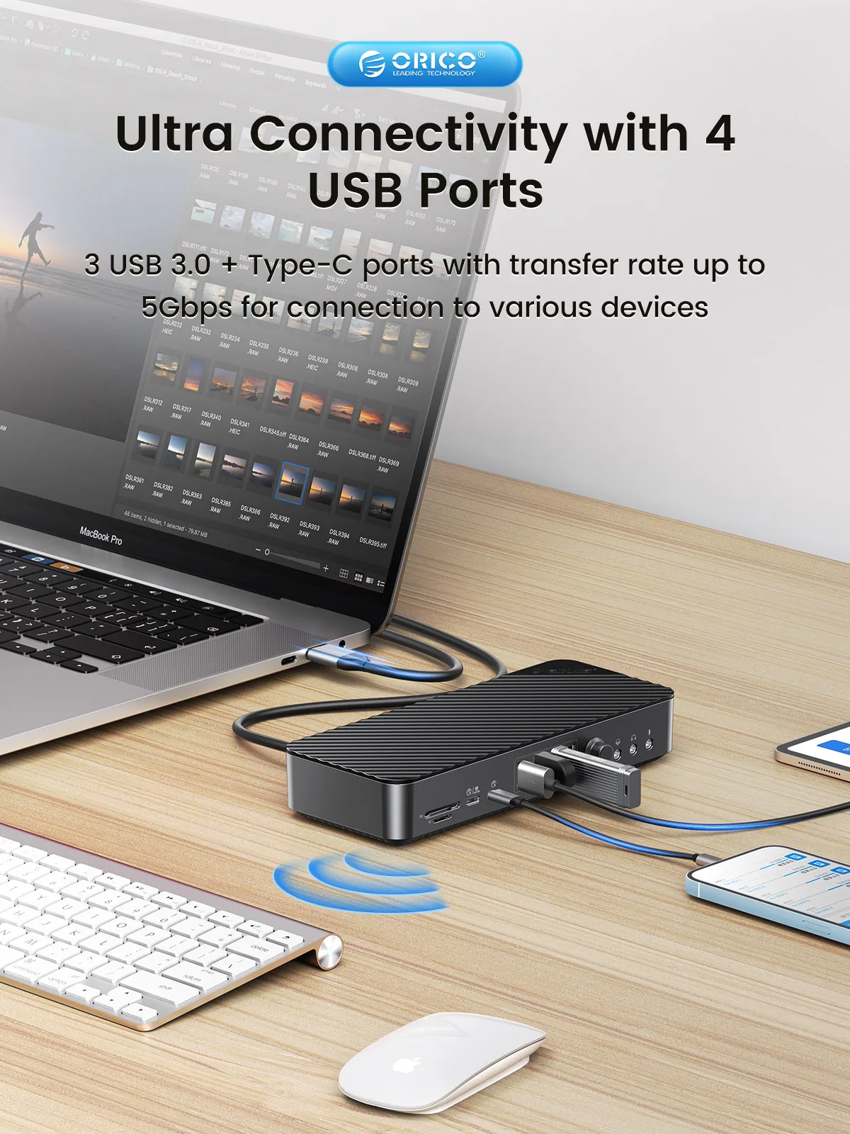 USB3.0 * 3 + Tipo-C 3,0*1 + USB2.0 * 4. Puede conectarse a varios dispositivos