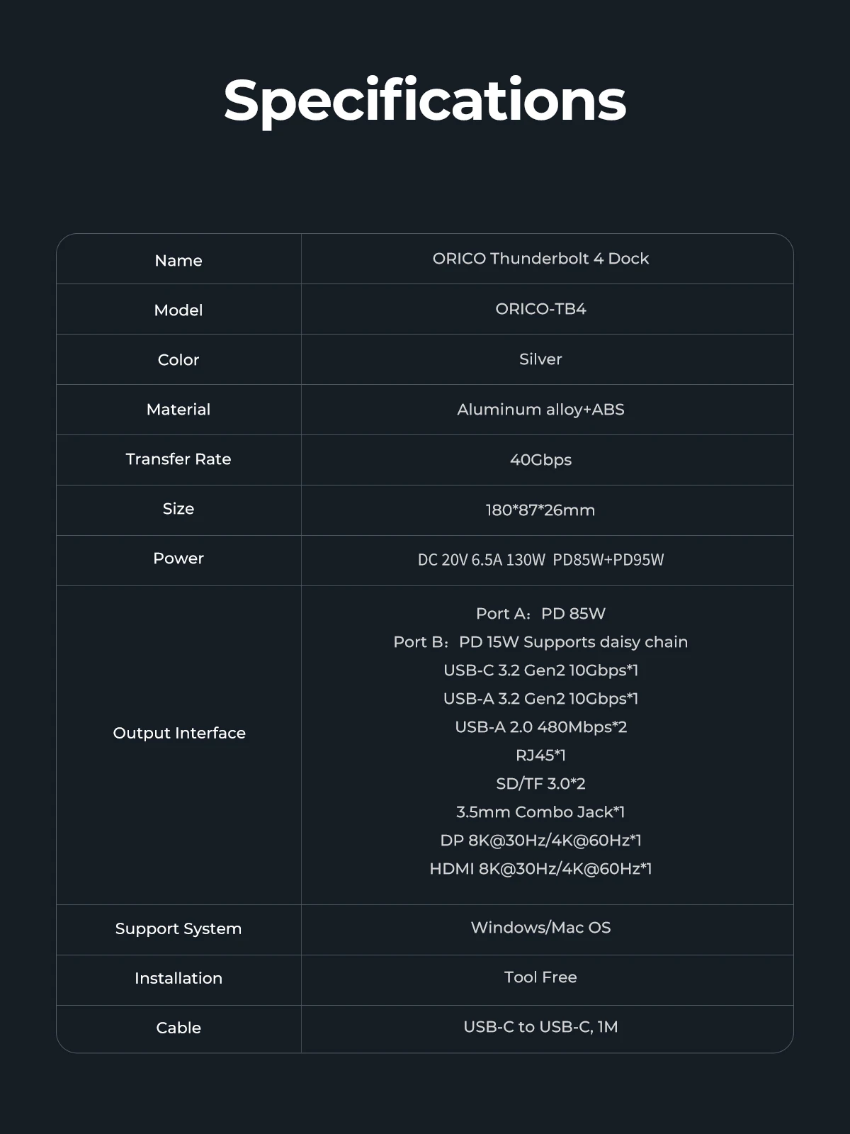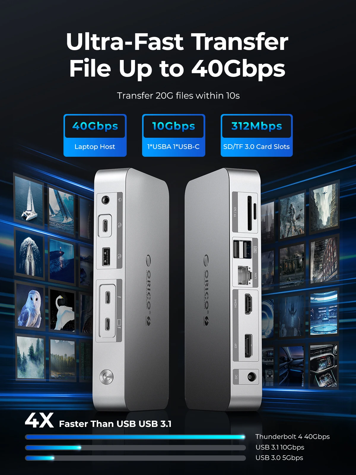 Comprar ORICO-estación de acoplamiento Thunderbolt 4 tipo C a HDMI, adaptador compatible con 8K @ 30Hz, USB 3,2 Gen2, HUB Splitter para MacBook, Mac, Windows