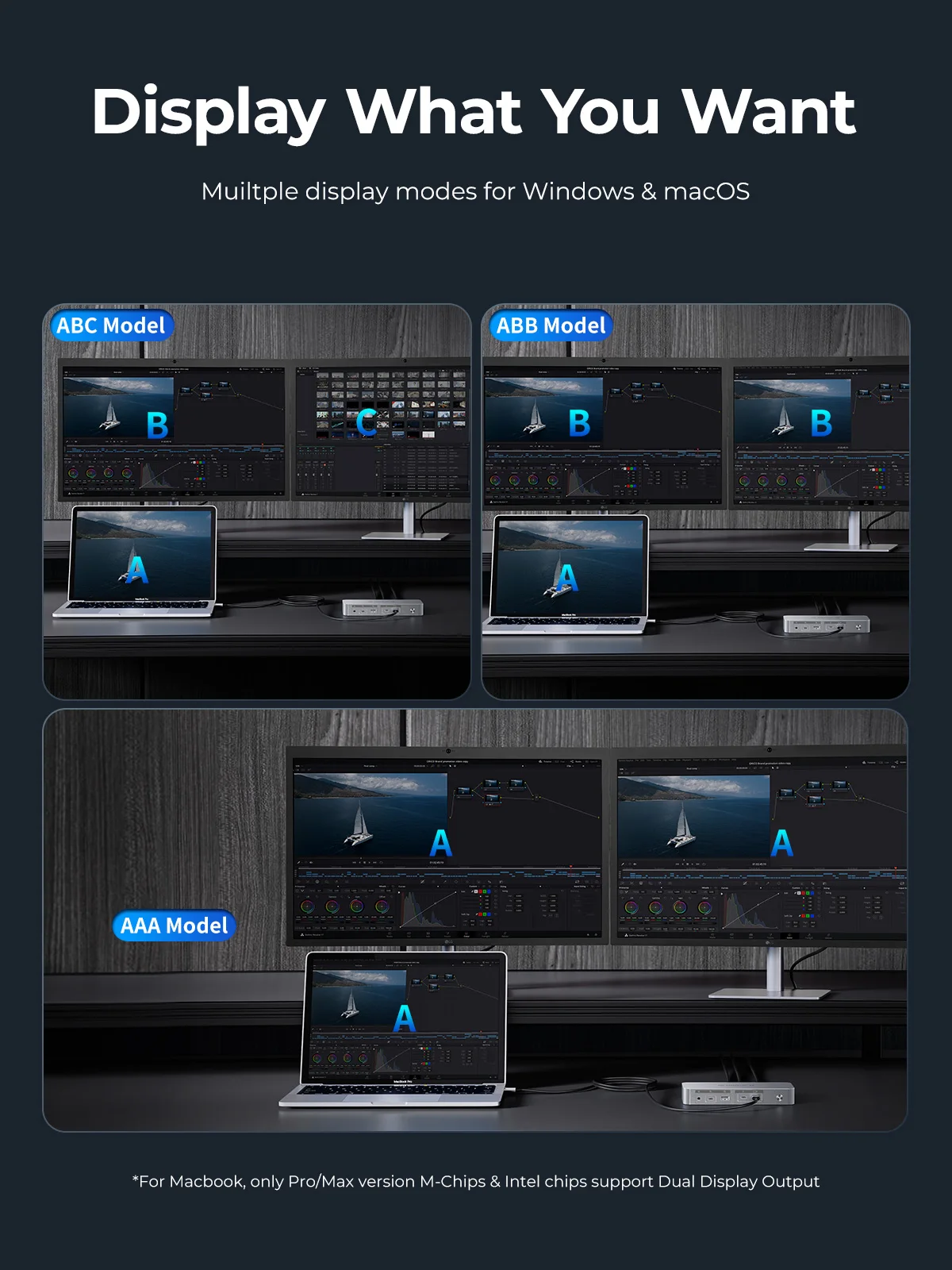 No se necesita controlador, plug-and-play.Compatible con portátiles equipados con un puerto Thunderbolt 4 o Thunderbolt 3.Tanto las computadoras portátiles MacBooks (OS 10.14 y posterior) como Windows (7, 8, 1, 10) están equipadas con Thunderbolt 4 o Thunderbolt 3, que funcionarán perfectamente con esta estación de acoplamiento