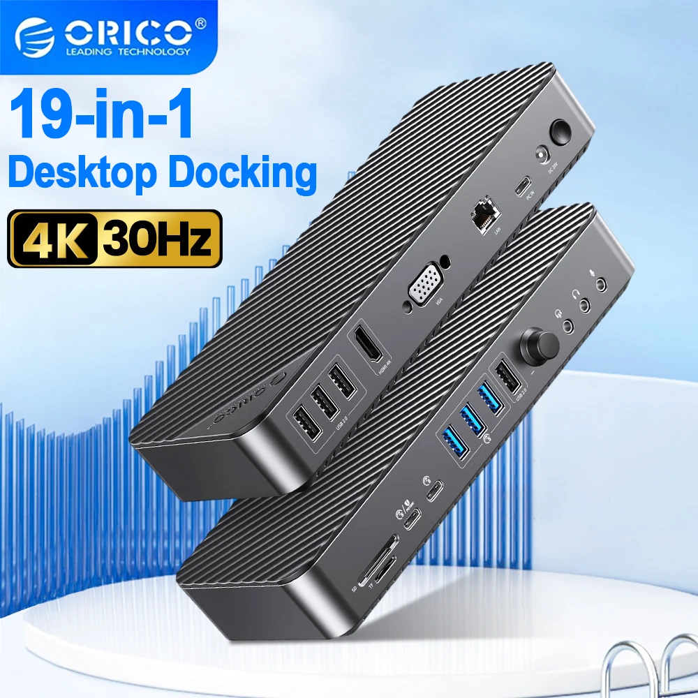 Comprar ORICO Estación de acoplamiento USB C 19 en 1 HDMI USB 3.0 SD/TF RJ45 Audio PD para Mac iPad Laptop 4K 30HZ, con concentrador de ajuste de volumen para PC
