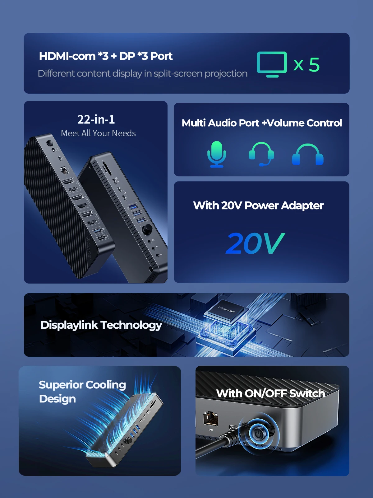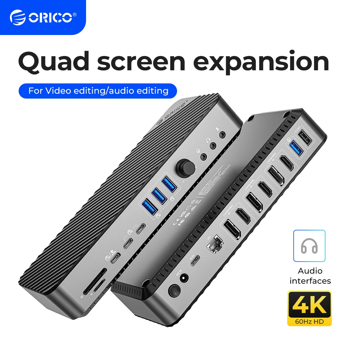 Comprar ORICO-estación de acoplamiento USB tipo C a 8K30Hz, DP, HDMI-Com, 5 pantallas diferentes, RJ45, PD, 22 en 1, Audio Mult, concentrador de 10Gbps para escritorio