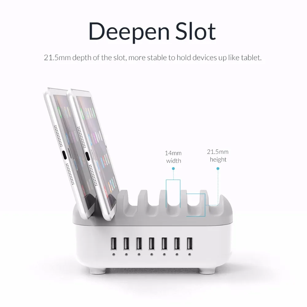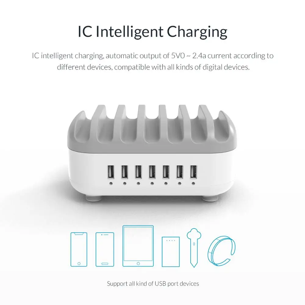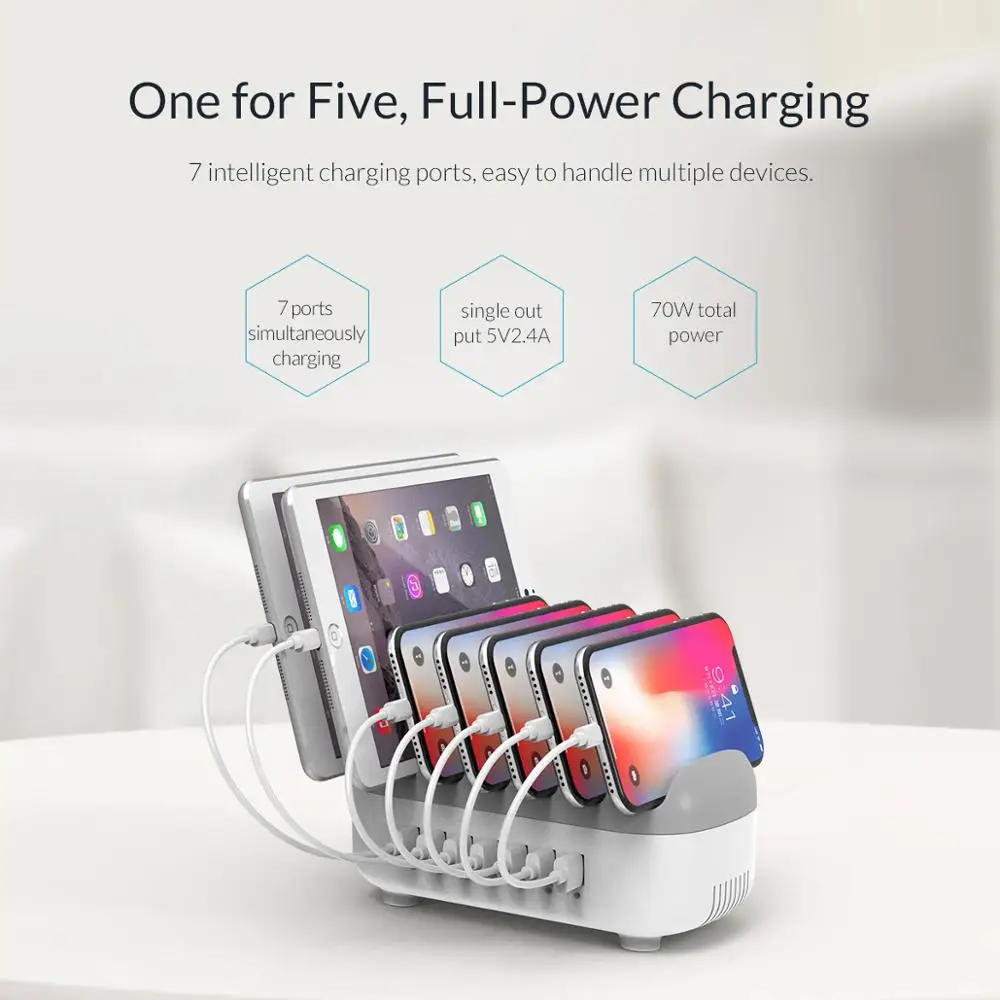 Comprar ORICO-estación de carga USB de 7 puertos, 70W, 5V, 2.4a x 7, para iphone, Kindle, Samsung, Xiaomi, Smartphone