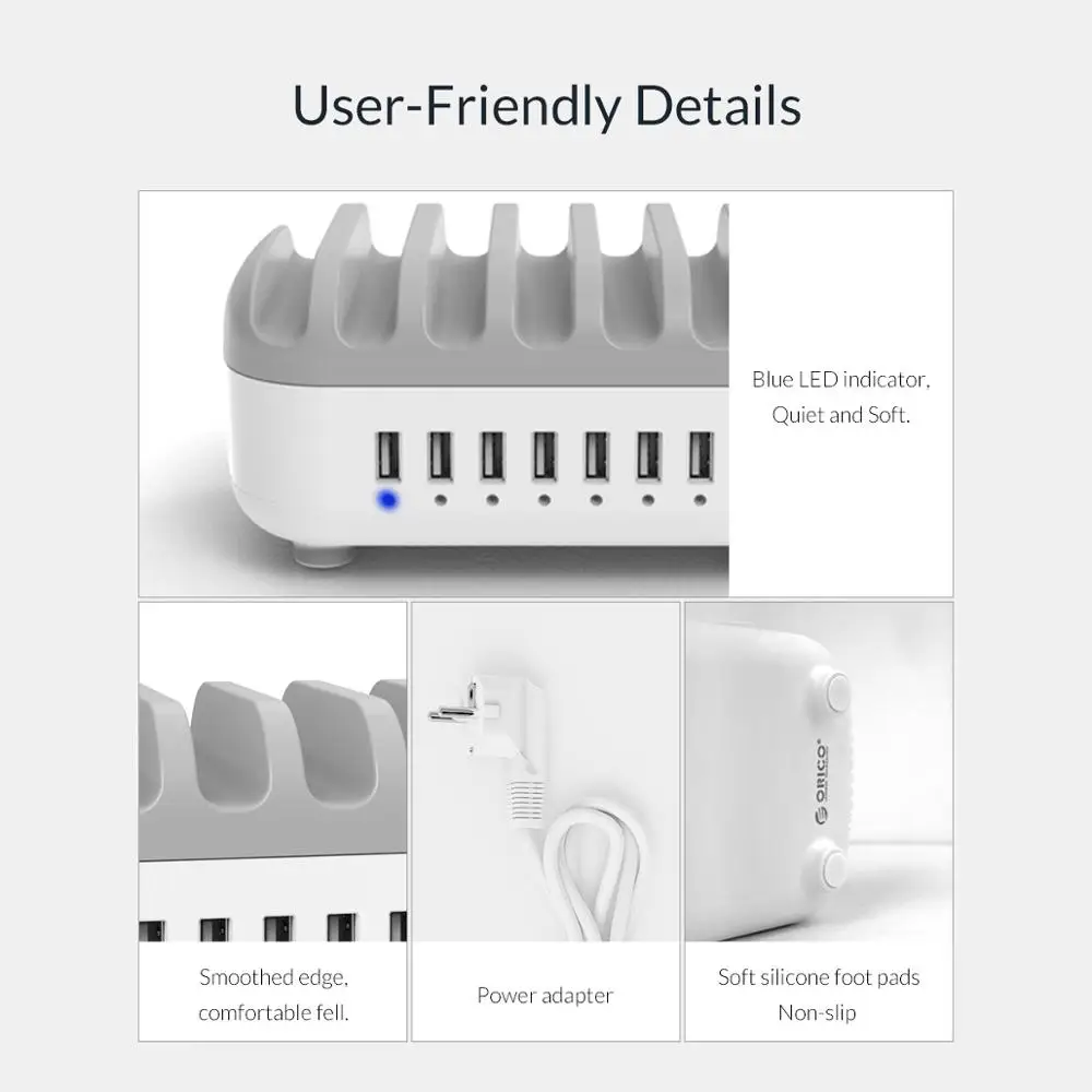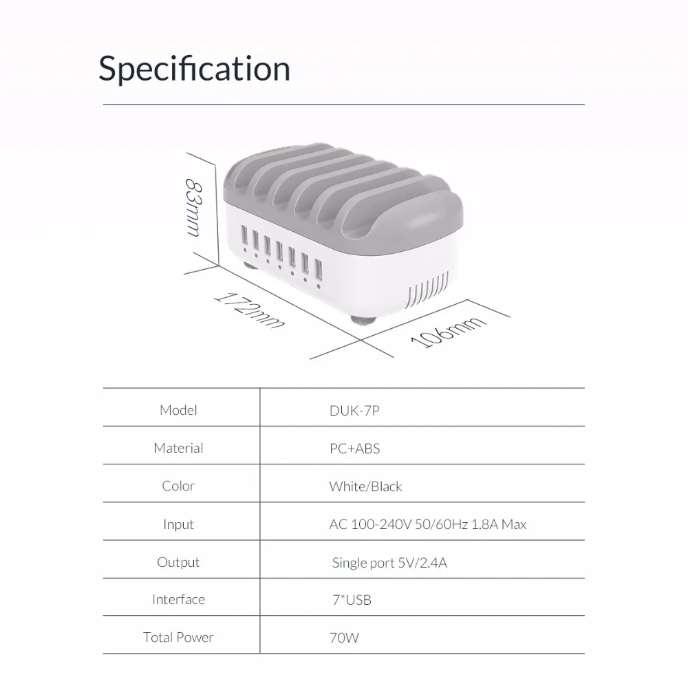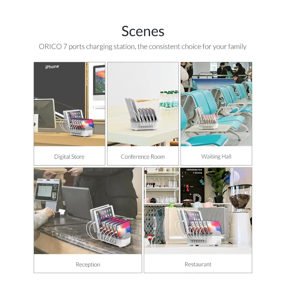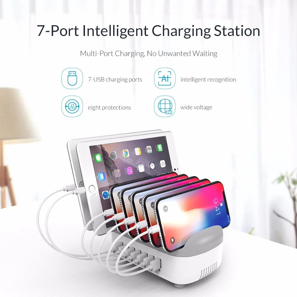 Comprar ORICO-estación de carga USB de 7 puertos, 70W, 5V, 2.4a x 7, para iphone, Kindle, Samsung, Xiaomi, Smartphone