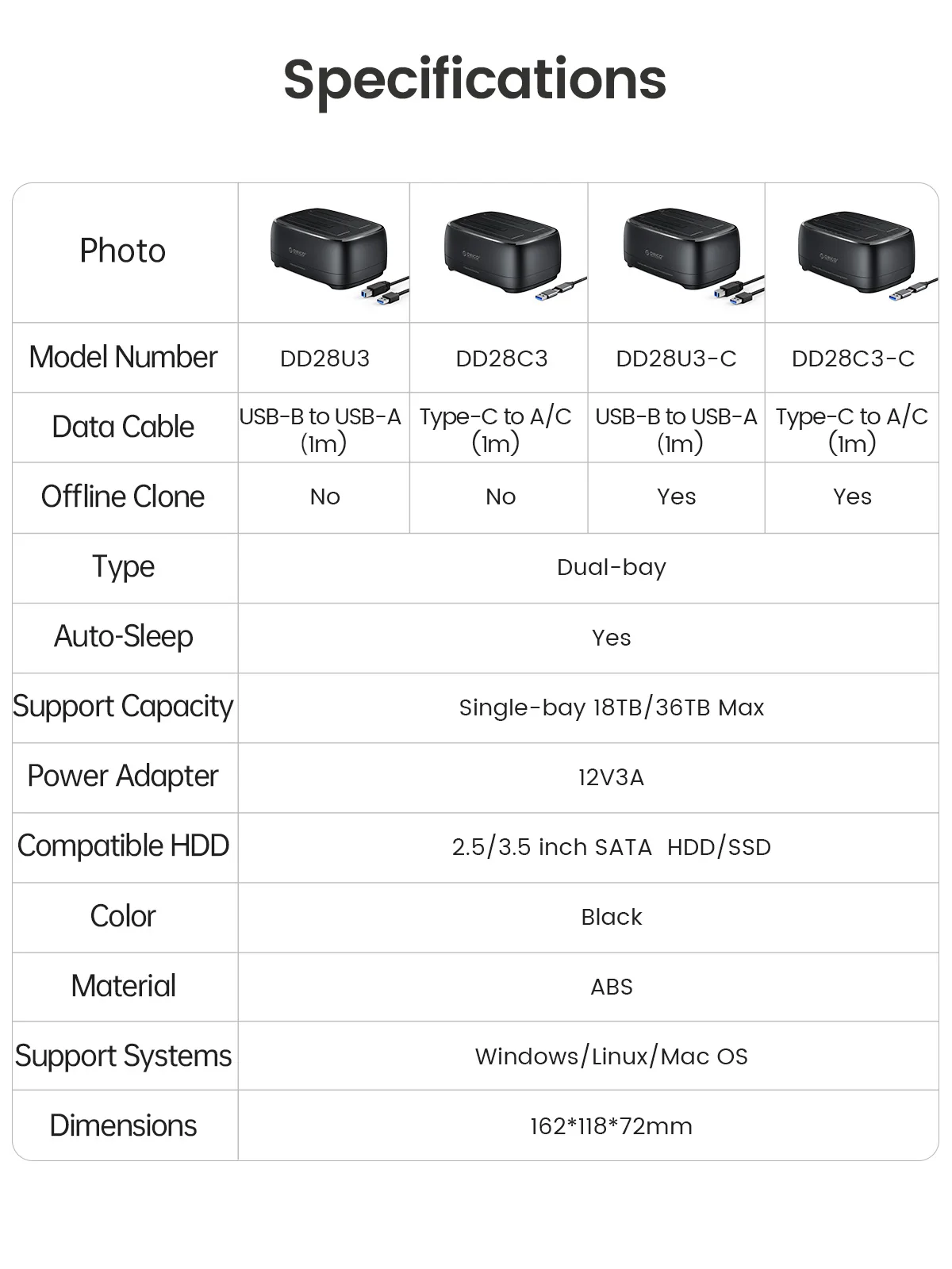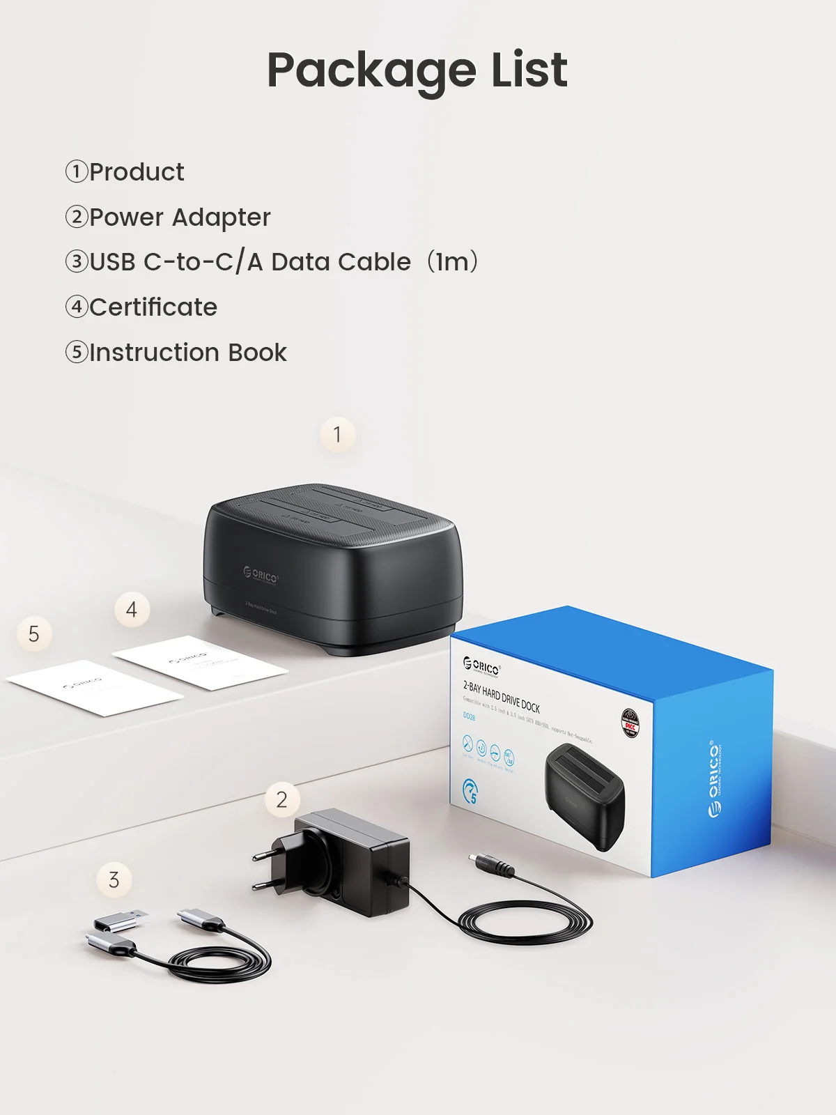 Comprar ORICO-Estación de disco duro de doble bahía, estación de acoplamiento con adaptador de corriente de 12V y 3A para HDD/SSD de 2,5/3,5 pulgadas, USB 3,0, 5Gbps, tipo C