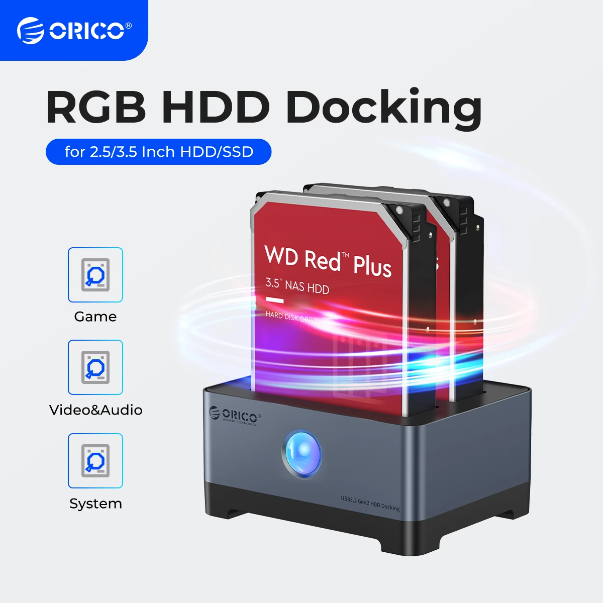 Comprar ORICO-estación de disco duro RGB tipo C, carcasa de aluminio de 2,5/3,5 pulgadas para HDD, diseño Cyberpunk RGB, bahía de disco duro de velocidad rápida de 10Gbps para PC