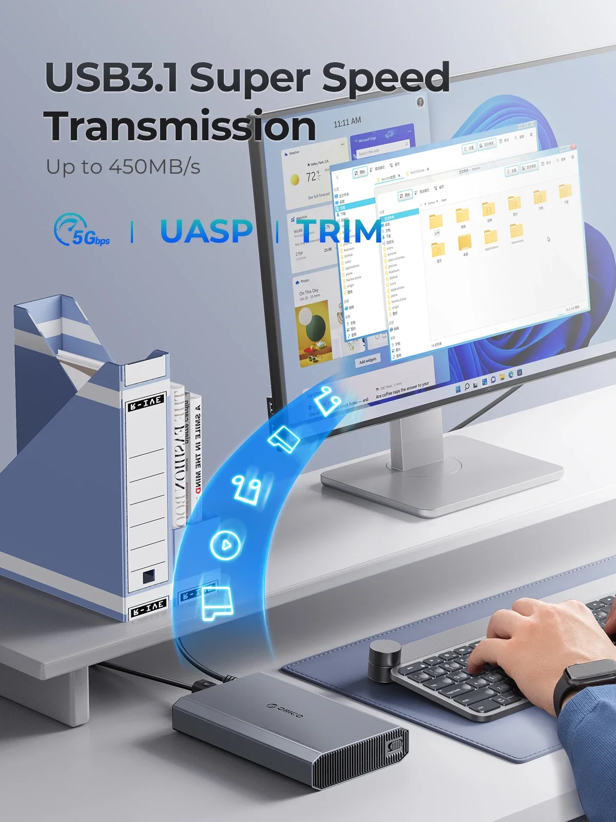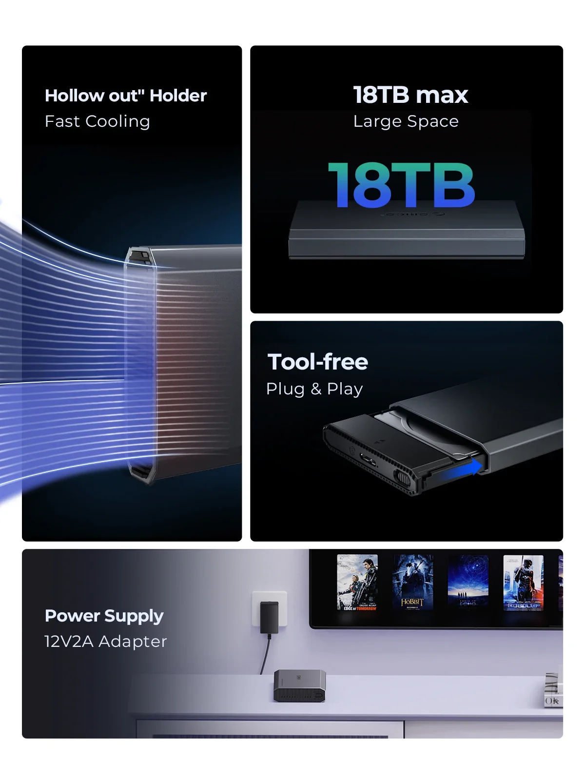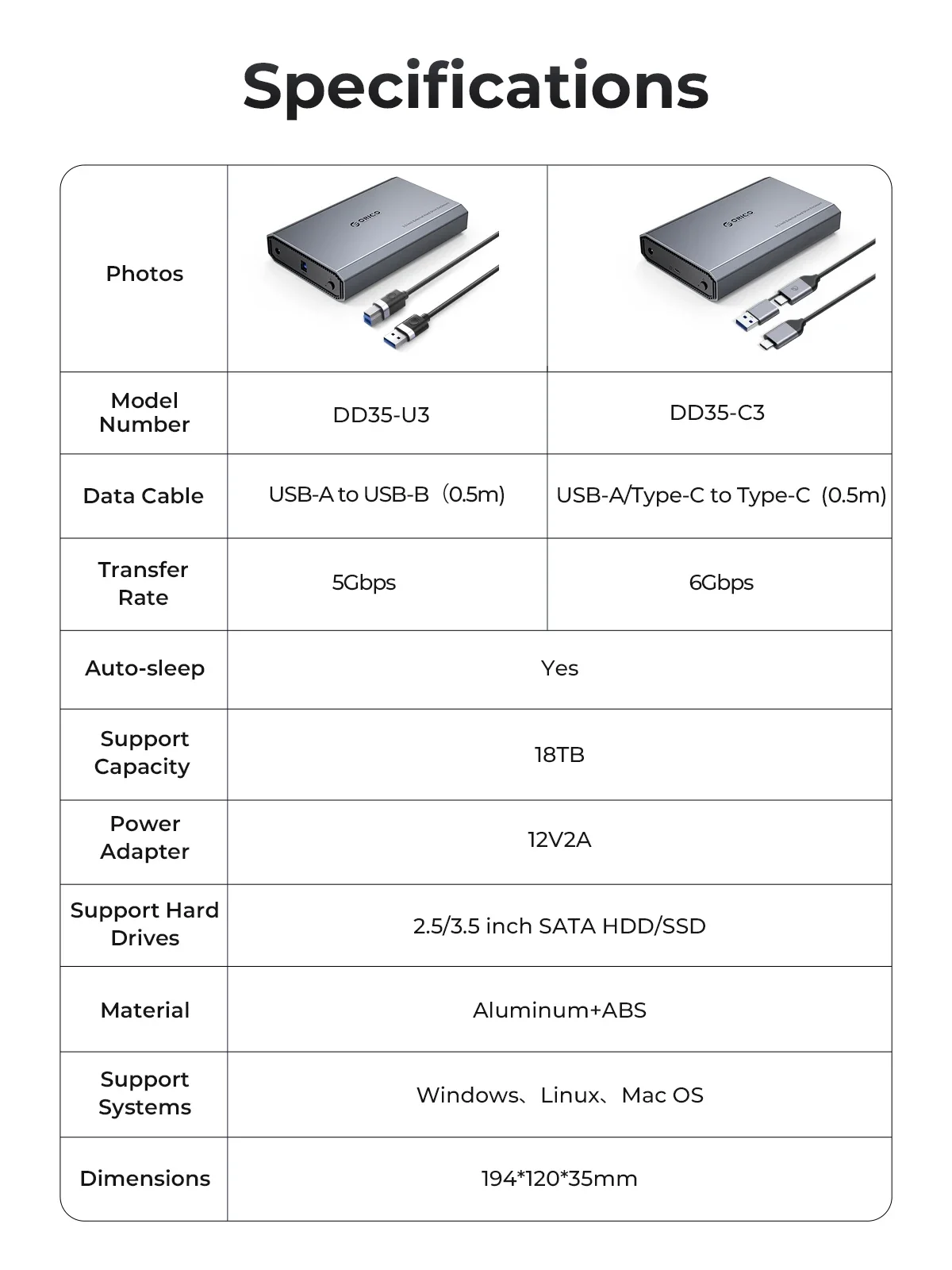 Comprar ORICO-funda HDD portátil de 2,5/3,5 pulgadas, carcasa de disco duro SATA tipo C, estación de acoplamiento HDD externa de aleación de aluminio para carcasa de PC