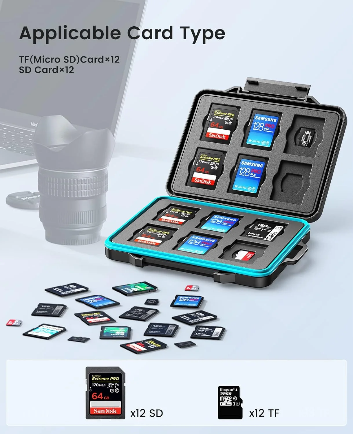 ★Diseño especial --- diseño con 12 ranuras para tarjetas SD y 12 ranuras para tarjetas Micro SD, tamaño pequeño, gran capacidad