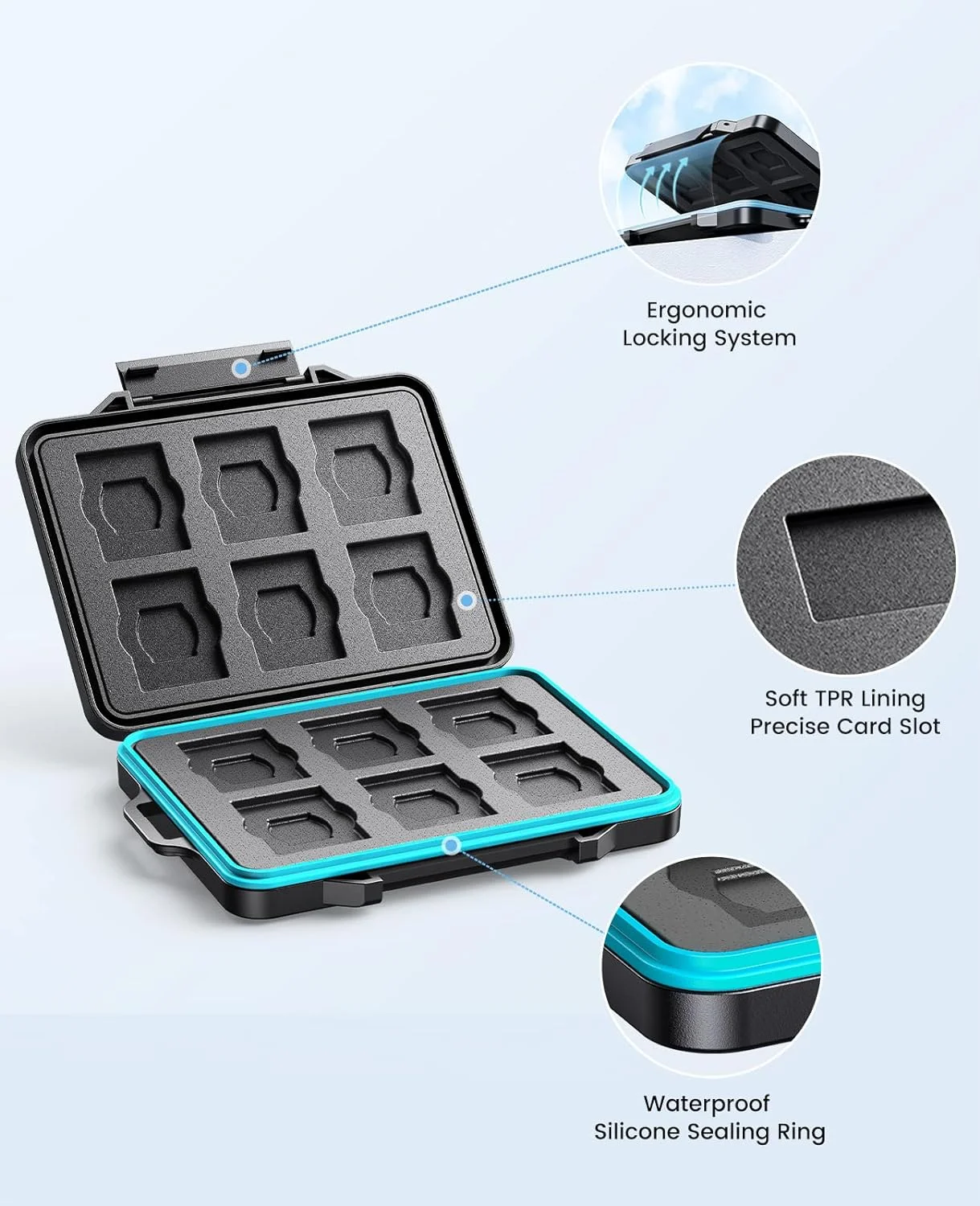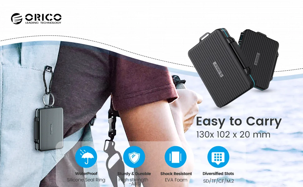 Comprar ORICO-funda impermeable para tarjeta SD, organizador de almacenamiento antiestático, 12 ranuras, TF, para cámara de ordenador