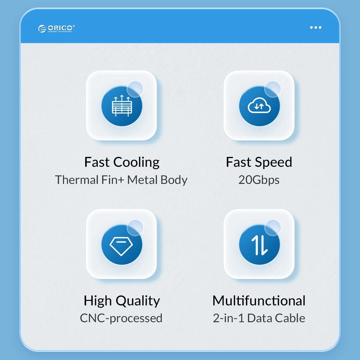Admite SSD M Key (protocolo NVMe) / M&B Key (protocolo NVME y SATA), no compatible con SSD B Key, con 30cmCable de fecha 2 en 1 C a C/A.