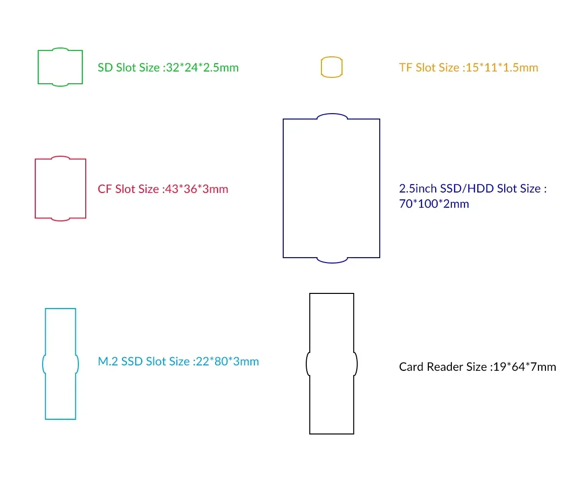 Tipo de tarjeta aplicable: Tarjeta TF(Micro SD) x12, tarjeta SD x12