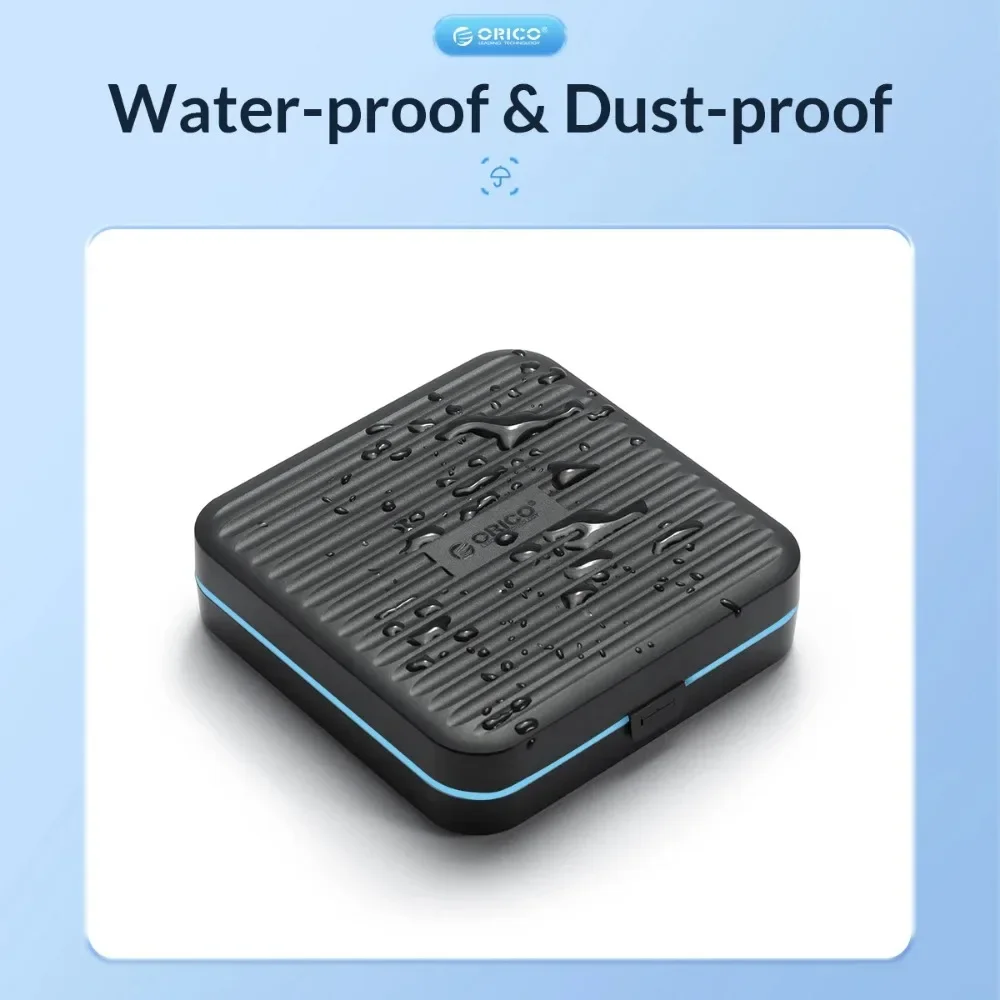 A prueba de polvo, impermeable, protección completa --- este soporte para tarjetas SD puede proteger sus tarjetas de destrucción o falta. Puede proteger sus tarjetas del goteo de agua, pero no se puede usar en agua y bajo la lluvia. Por favor, tenga esto en cuenta antes de comprar.
