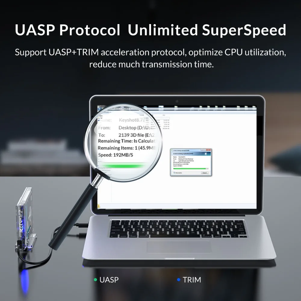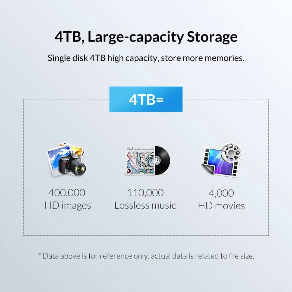 4.Admite disco duro de alta capacidad de 4 TB, compatible con unidades de estado sólido SATA HDD/SSD de 7-9,5 mm de espesor y 2,5 pulgadas