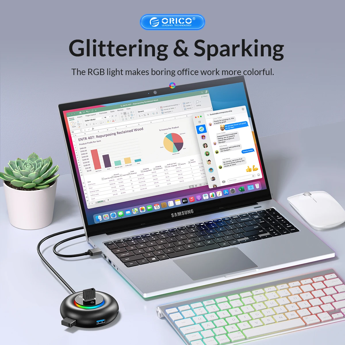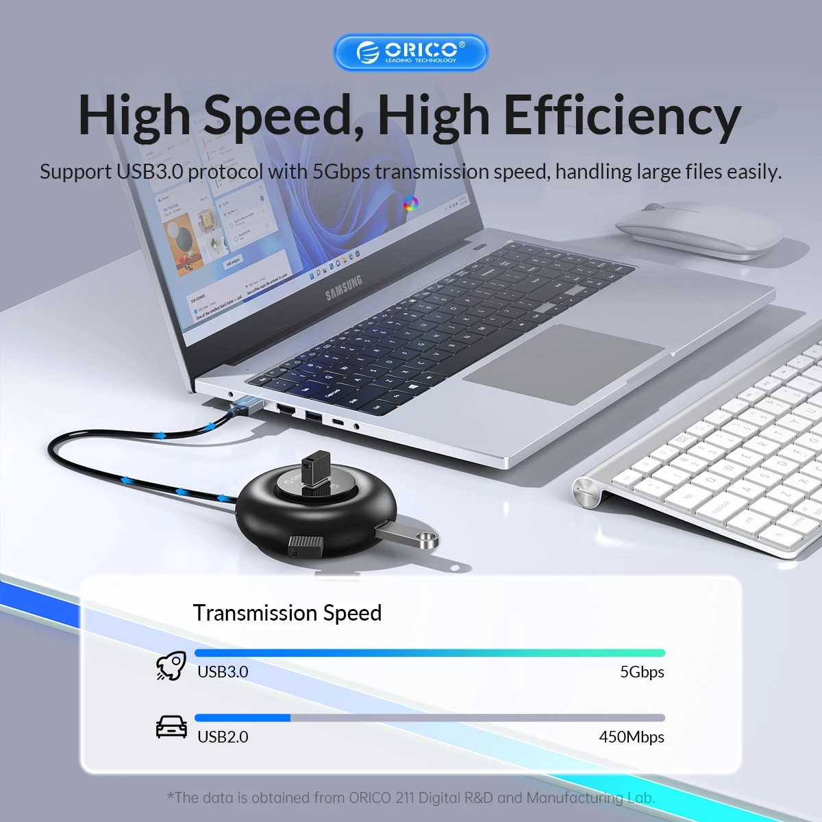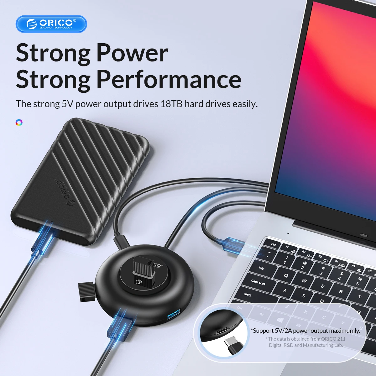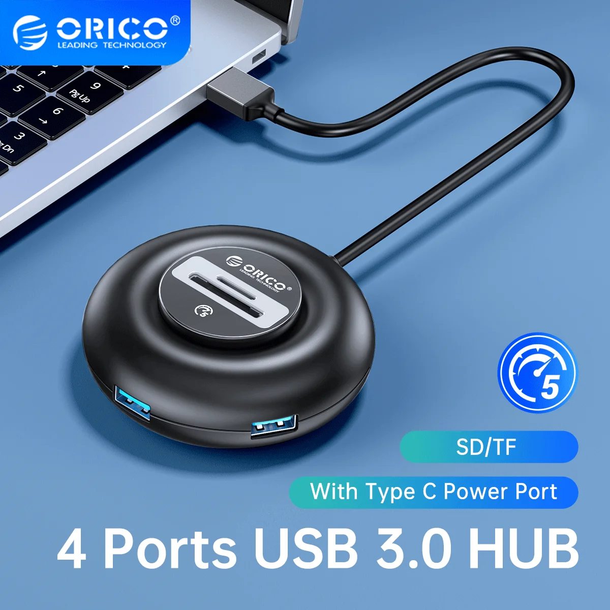 Comprar ORICO-HUB de 4 puertos USB 3,0, divisor redondo USB C con carga tipo C, puertos SD TF para discos duros, PC, Macbook Pro