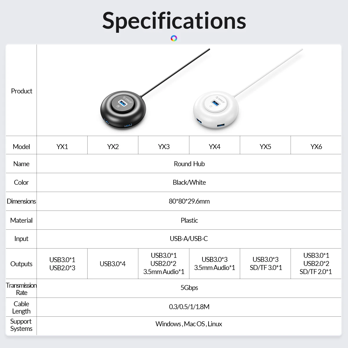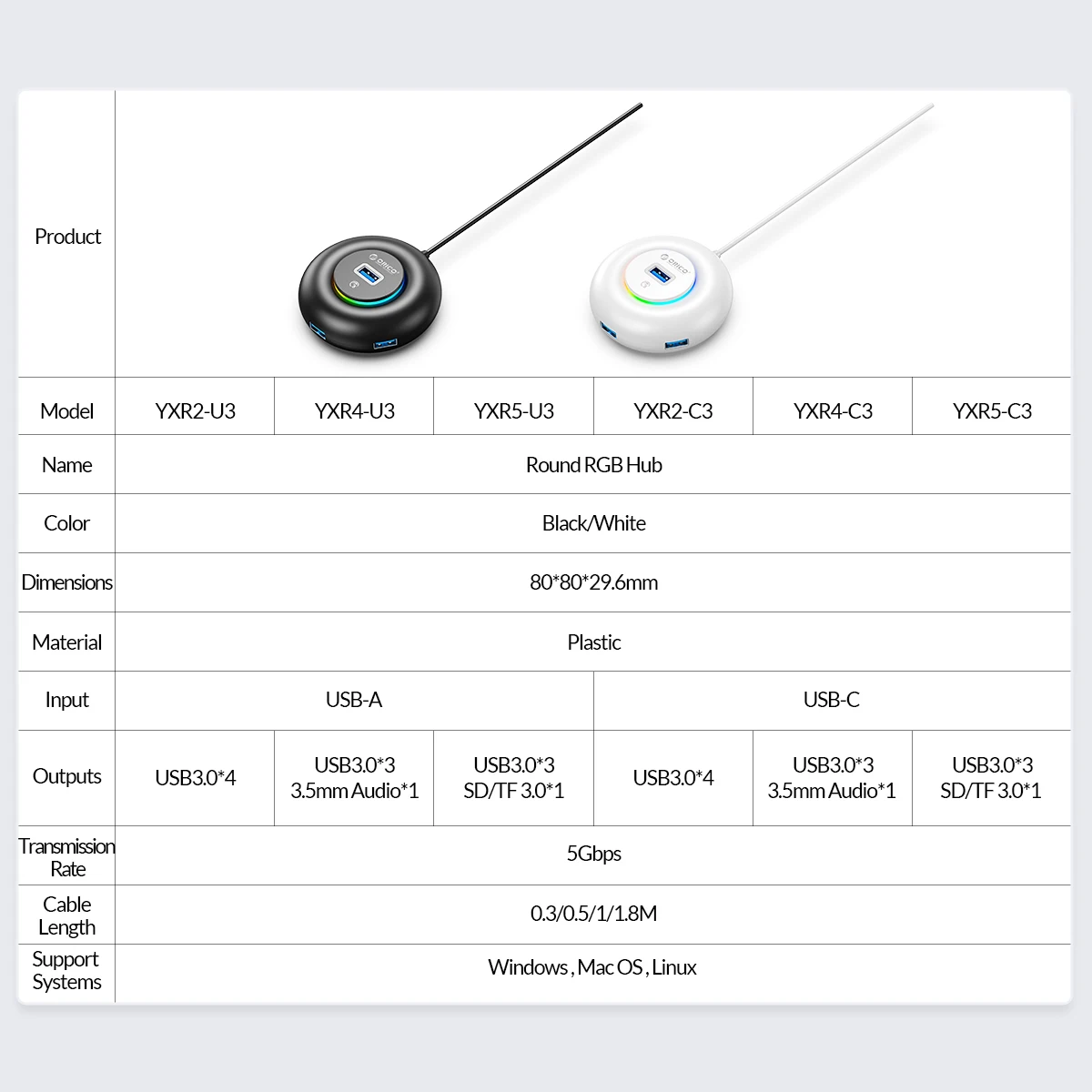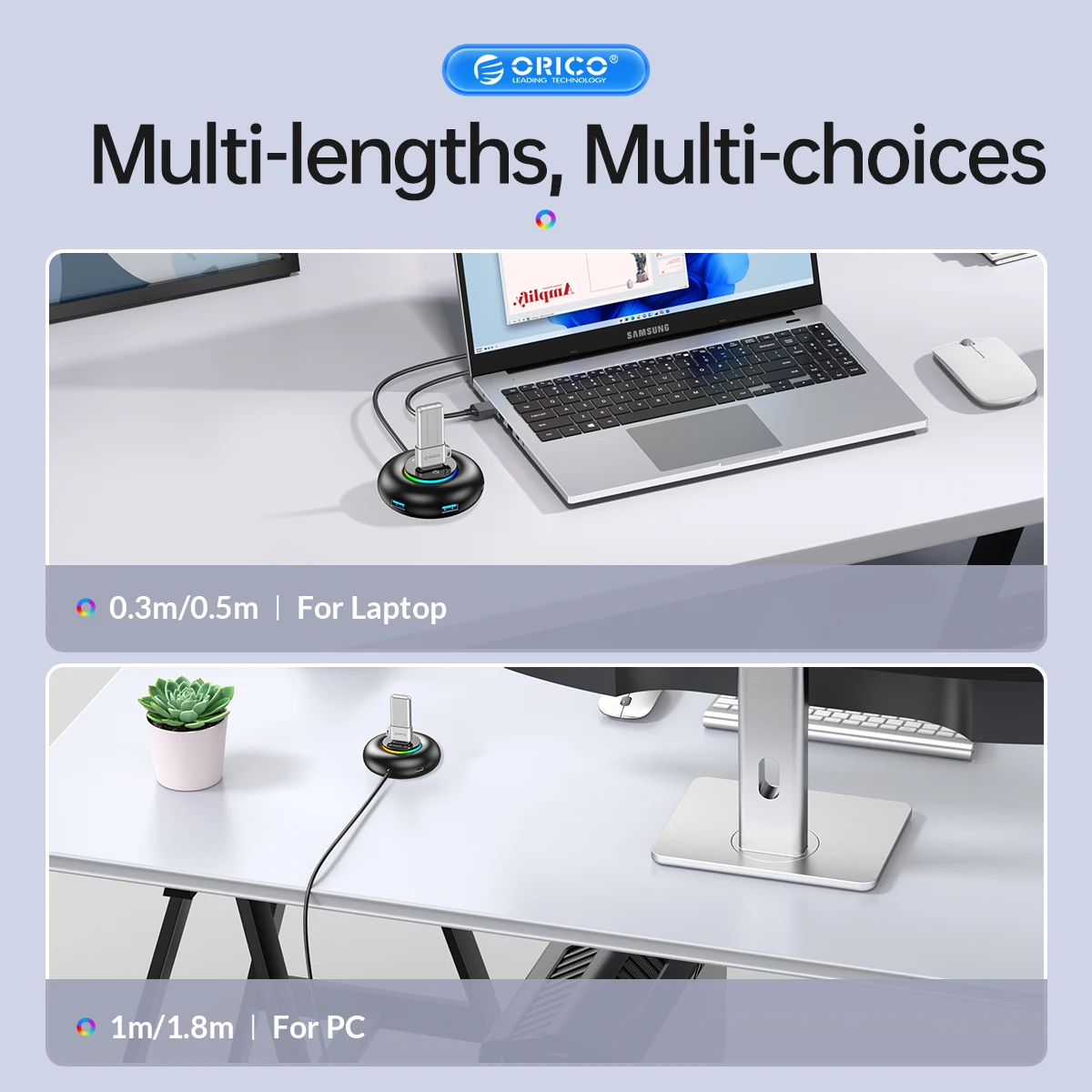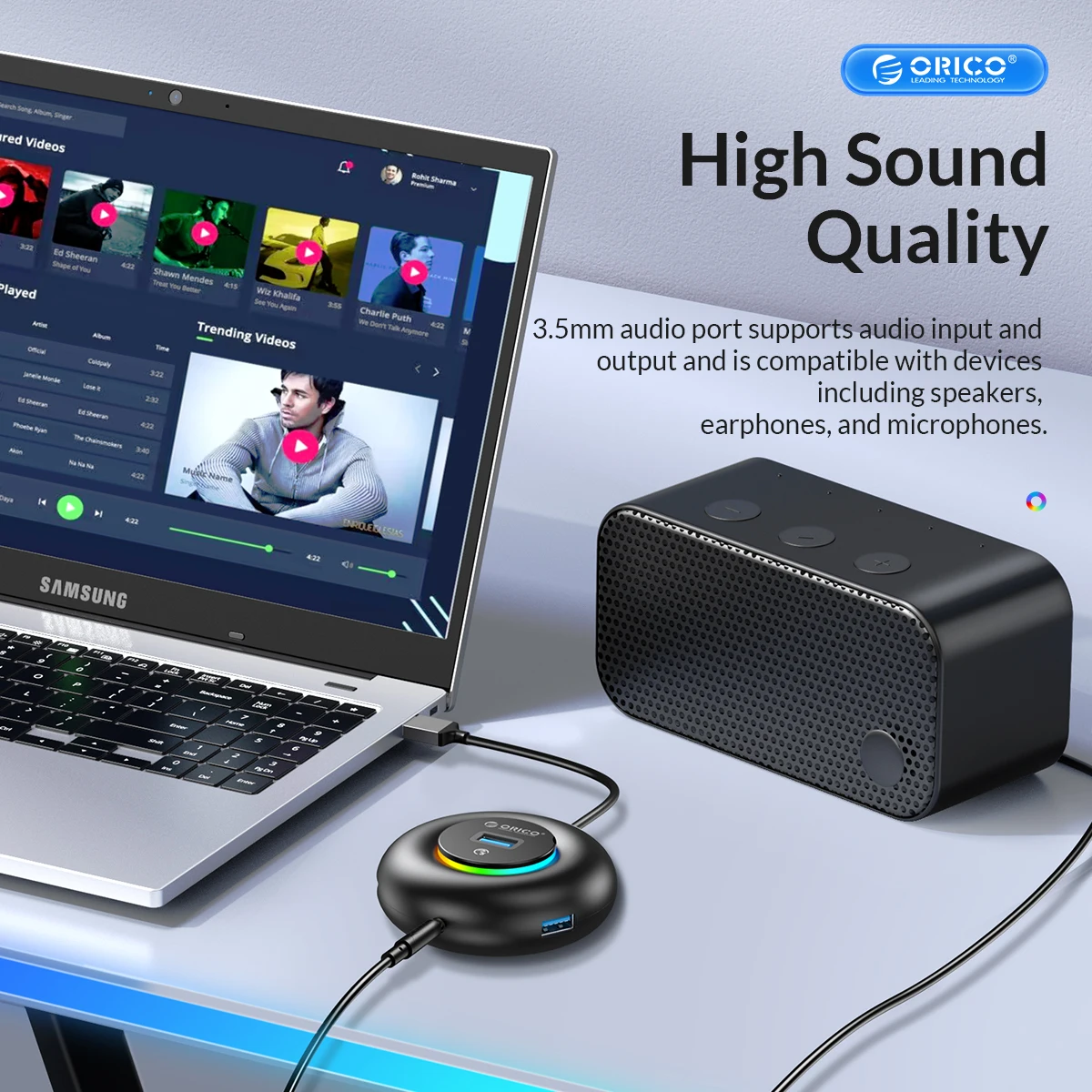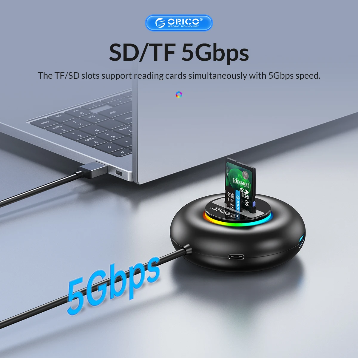 Comprar ORICO-HUB de 4 puertos USB 3,0, divisor redondo USB C con carga tipo C, puertos SD TF para discos duros, PC, Macbook Pro
