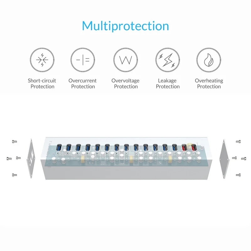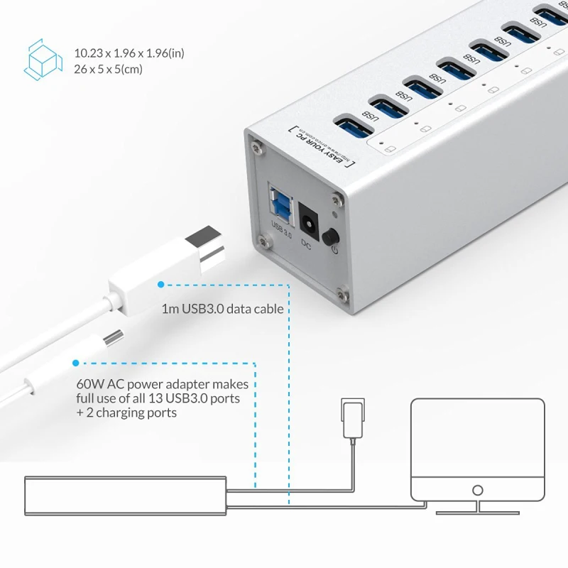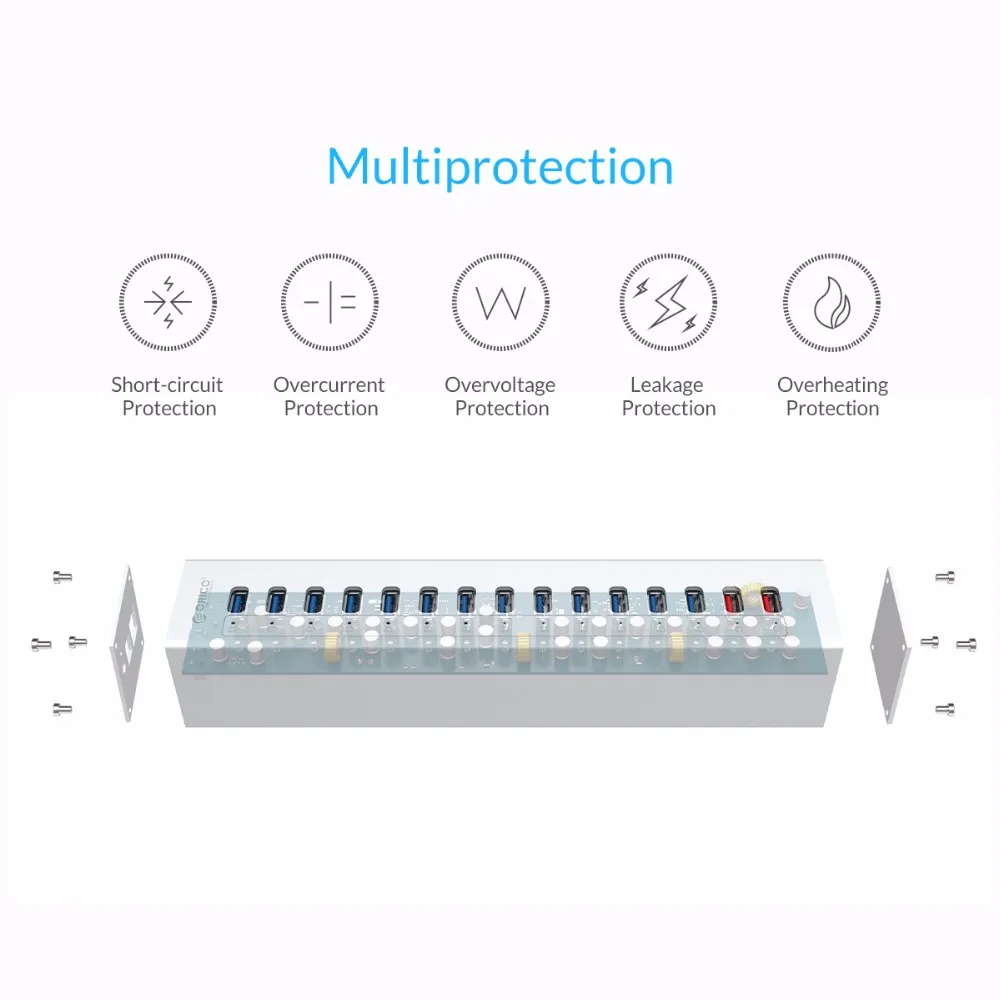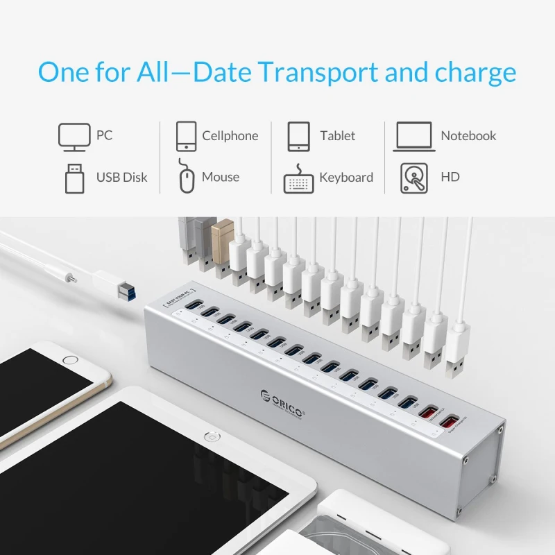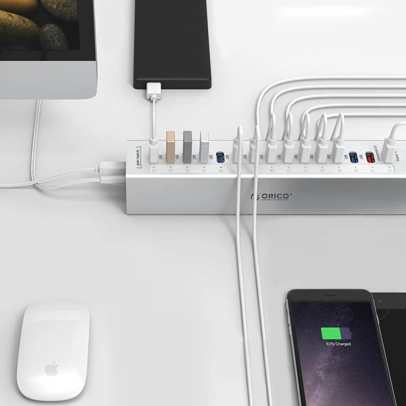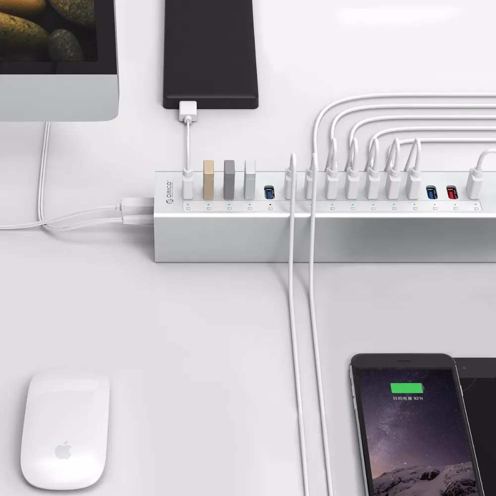 Comprar ORICO-Hub A3H13P2-SV de 13 puertos de aluminio, splitter con puertos de carga de 5V y 2.4A, multi USB3.0, supercargador de 5V y 1A, universal, plata