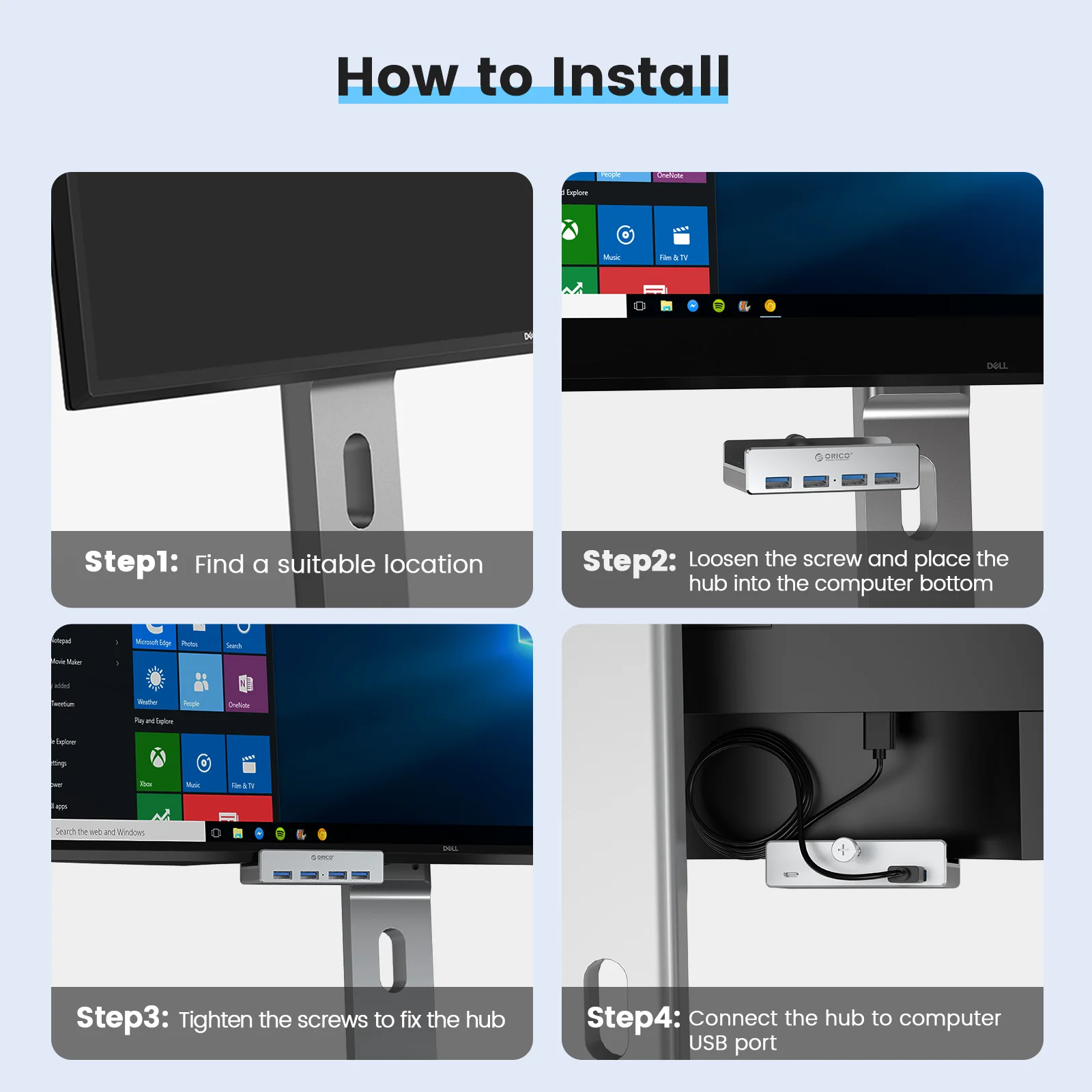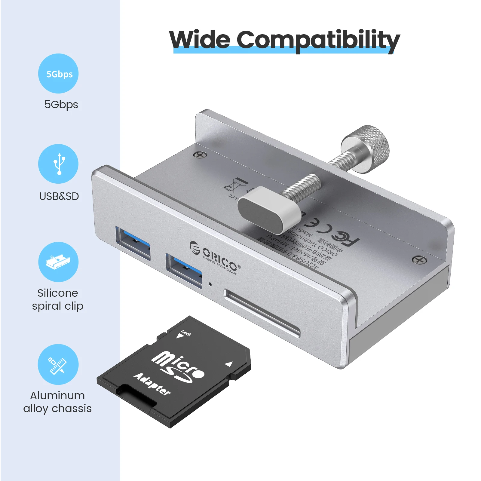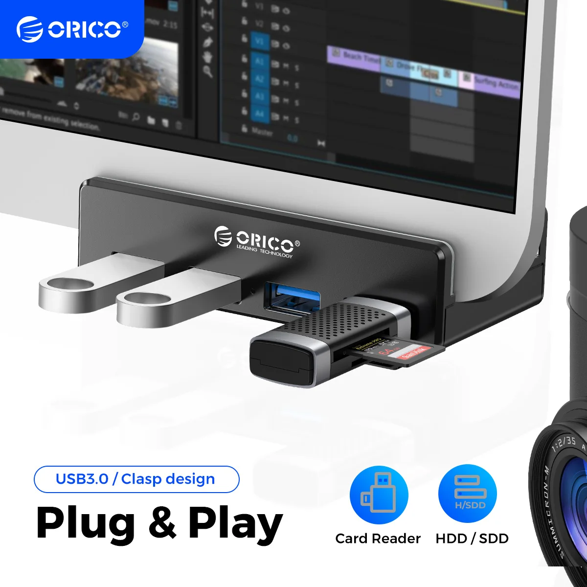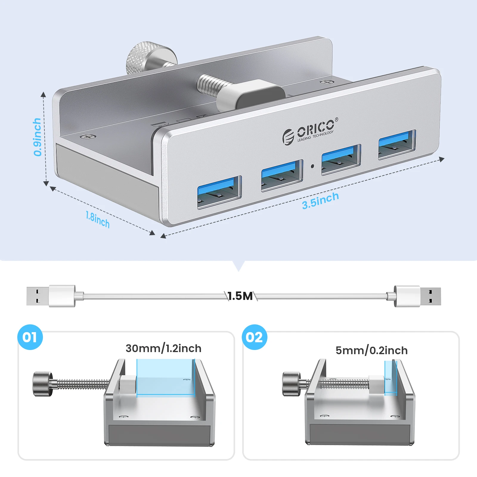 Comprar ORICO-HUB de aluminio con 4 puertos USB 3,0, dispositivo con rango de Clip de 10-32mm con Cable de 150cm, potencia de 5V 2a para fotógrafo Vloger