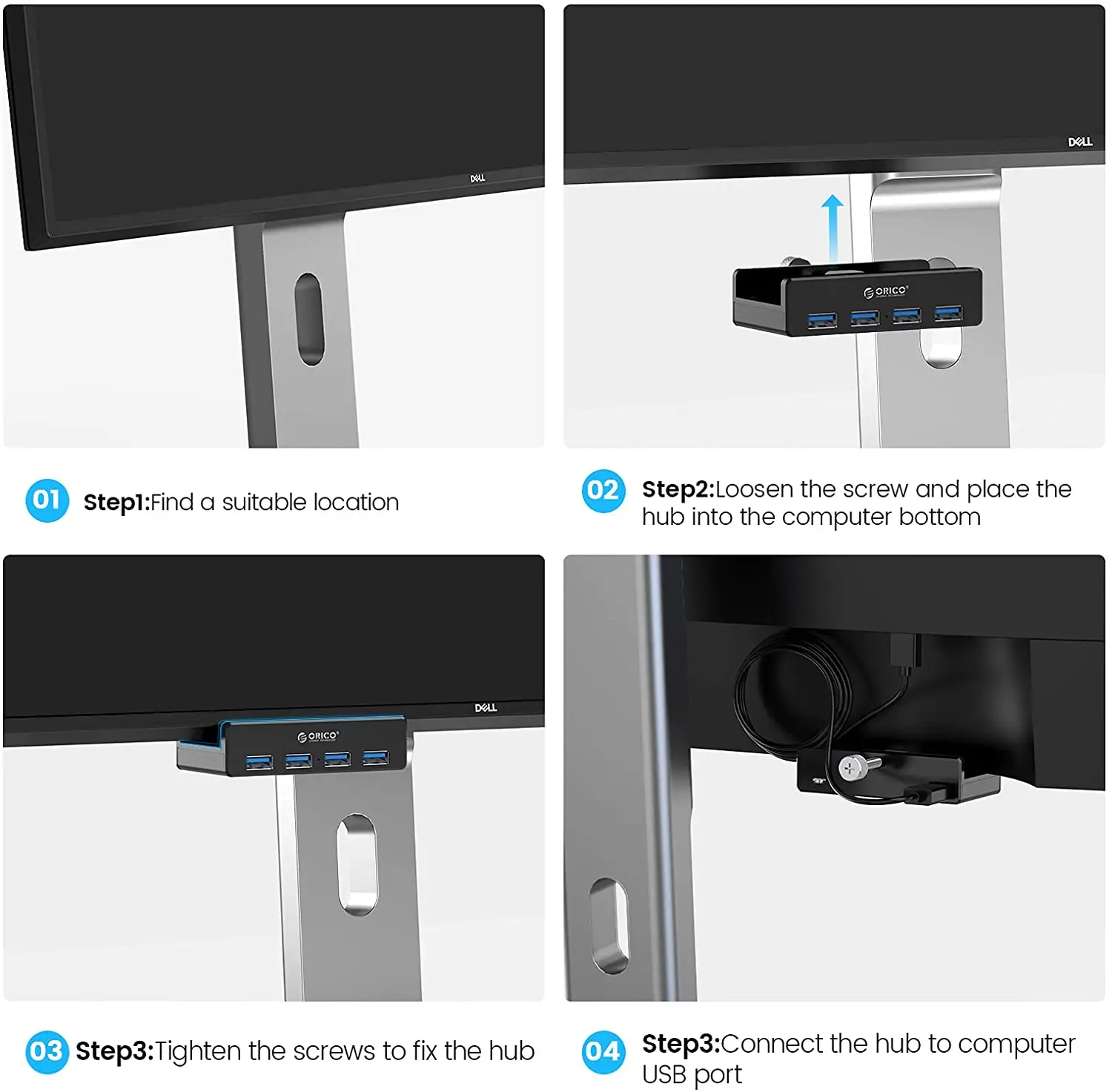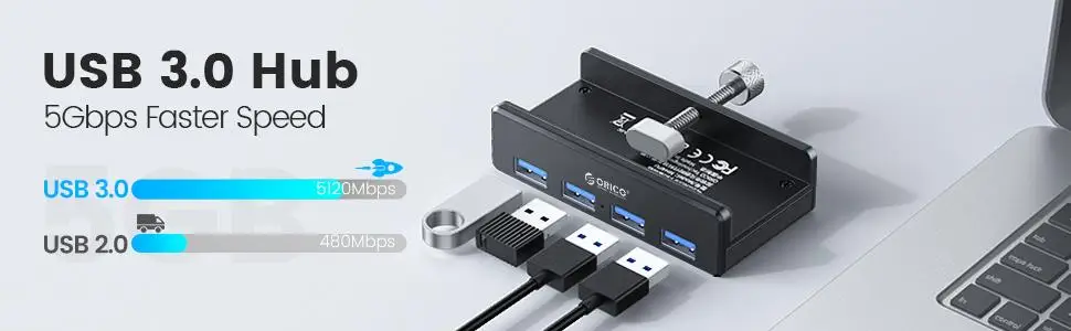 Comprar ORICO HUB de clip USB 3.0 de aluminio de 4 puertos con fuente de alimentación Transmisión de datos de alta velocidad de 5 GBPS para PC MAC OS (MH4PU-P)
