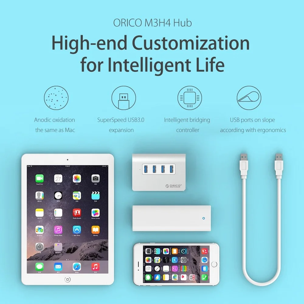 Comprar ORICO-HUB M3H4 USB 3,0, nuevo diseño Mac, Mini, de aluminio de alta velocidad, 4 puertos, extensión, divisor con Cable de datos