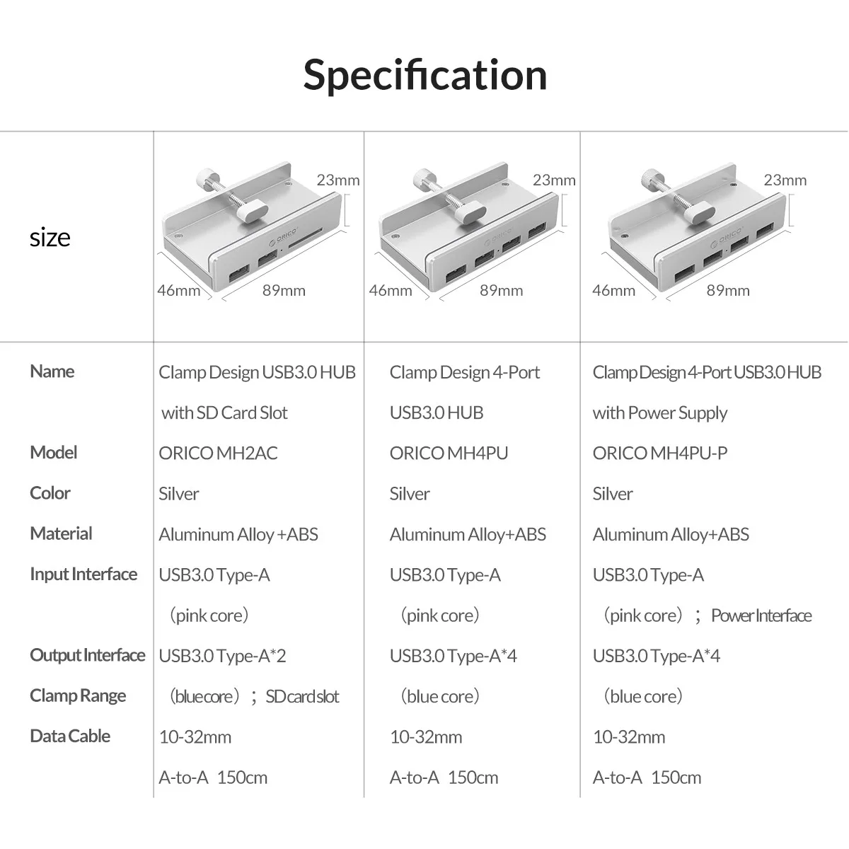 Comprar ORICO-HUB USB 3,0 con 4 puertos, adaptador divisor externo de aluminio, tipo Clip, para ordenador portátil, accesorios de ordenador (MH4PU)