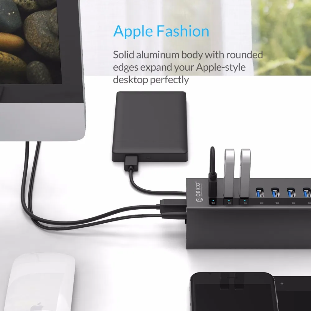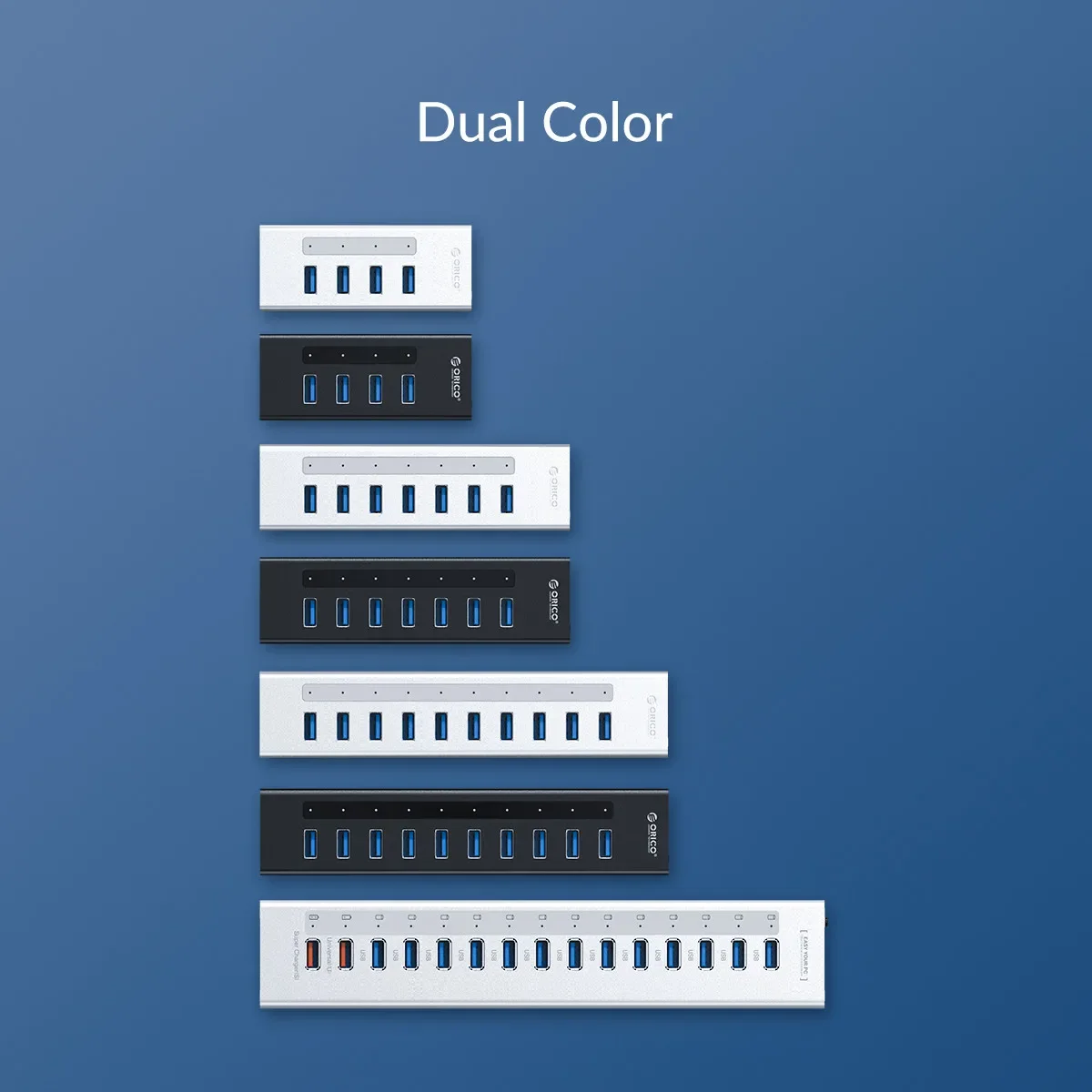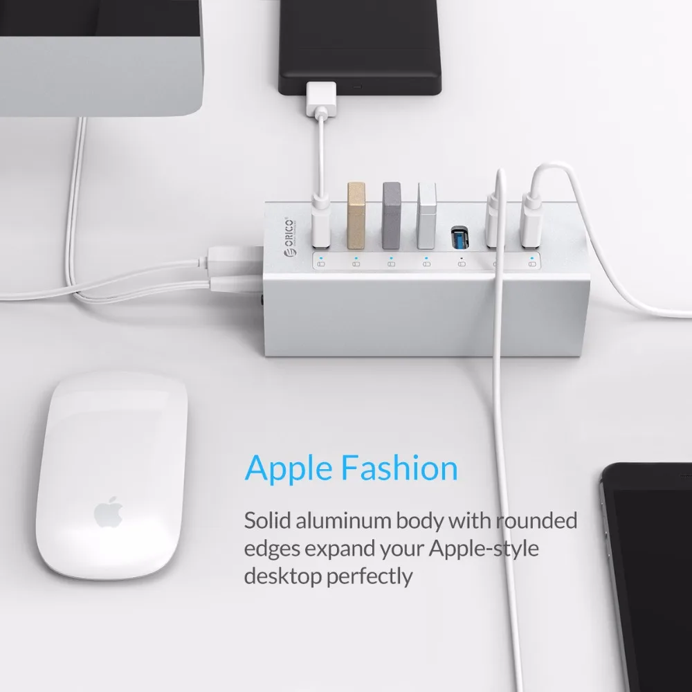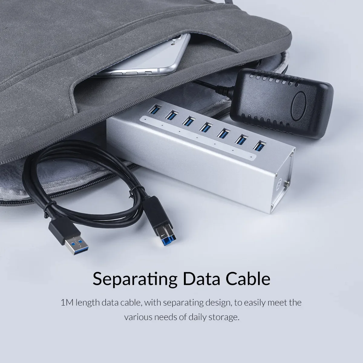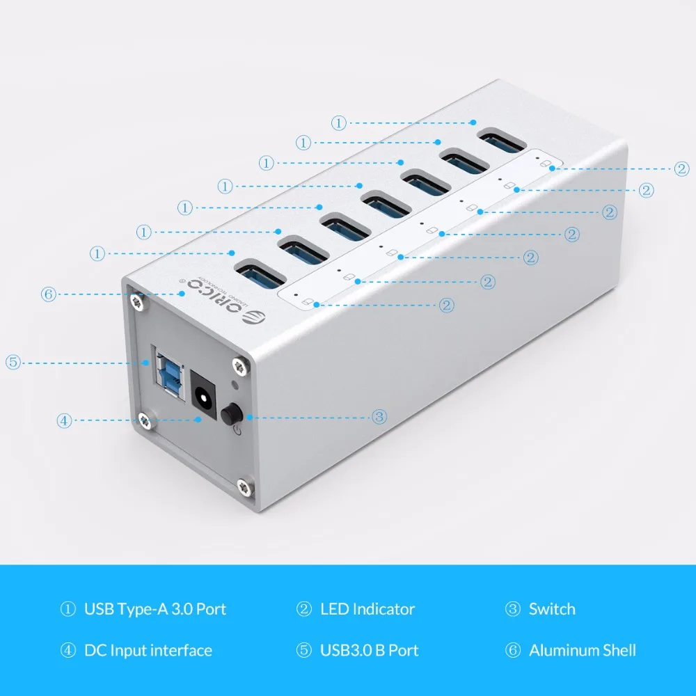 Comprar ORICO-HUB USB 3,0 de aluminio, 5Gbps, 7 puertos, divisor USB 3,0 con adaptador de corriente de 12V, compatible con BC 1,2, divisor de carga para PC y portátil