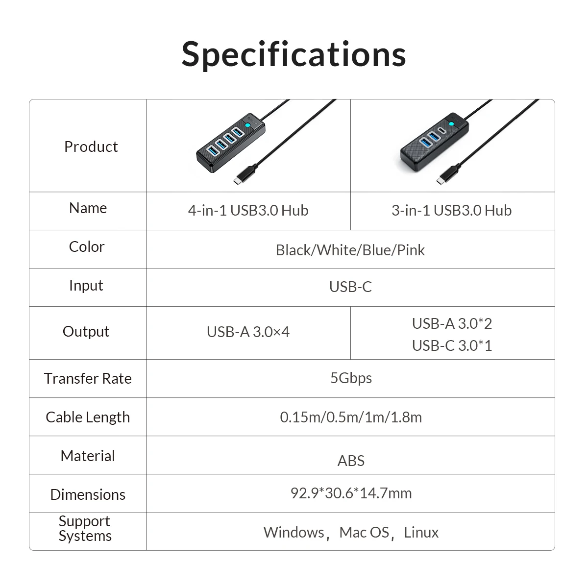 Comprar ORICO-HUB USB 3,0 con divisor Ethernet RJ45 de 1000Mbps, expansor de adaptador Multi OTG DE DATOS ultradelgado para accesorios de ordenador y PC