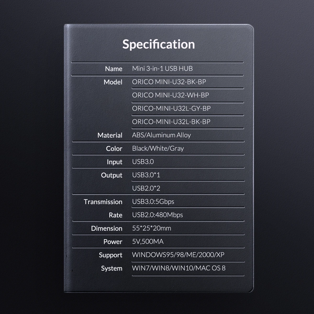 ORICO-Hub USB 3,0 para portátil, divisor USB inalámbrico, extensor de 3 puertos para ordenador portátil, Hub de carga USB 2,0 para accesorios de ordenador portátil