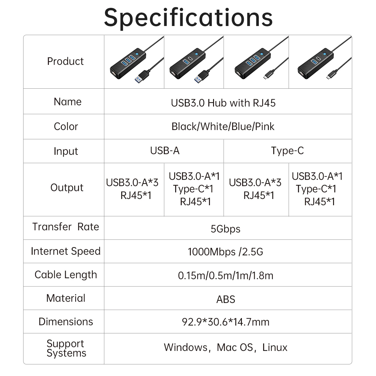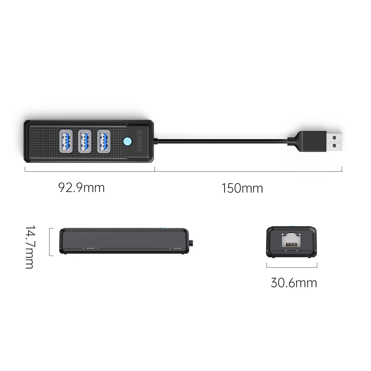 Comprar ORICO-HUB USB 3,0 tipo C RJ45, adaptador Ethernet Lan de 1000Mbps, tarjeta de red Gigabit, divisor OTG de 5Gbps para PC, Accesorios de ordenador