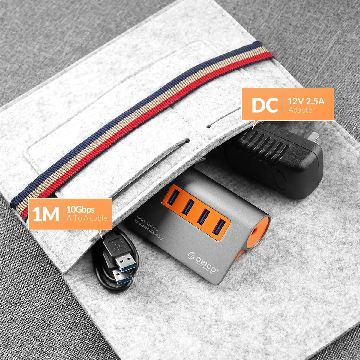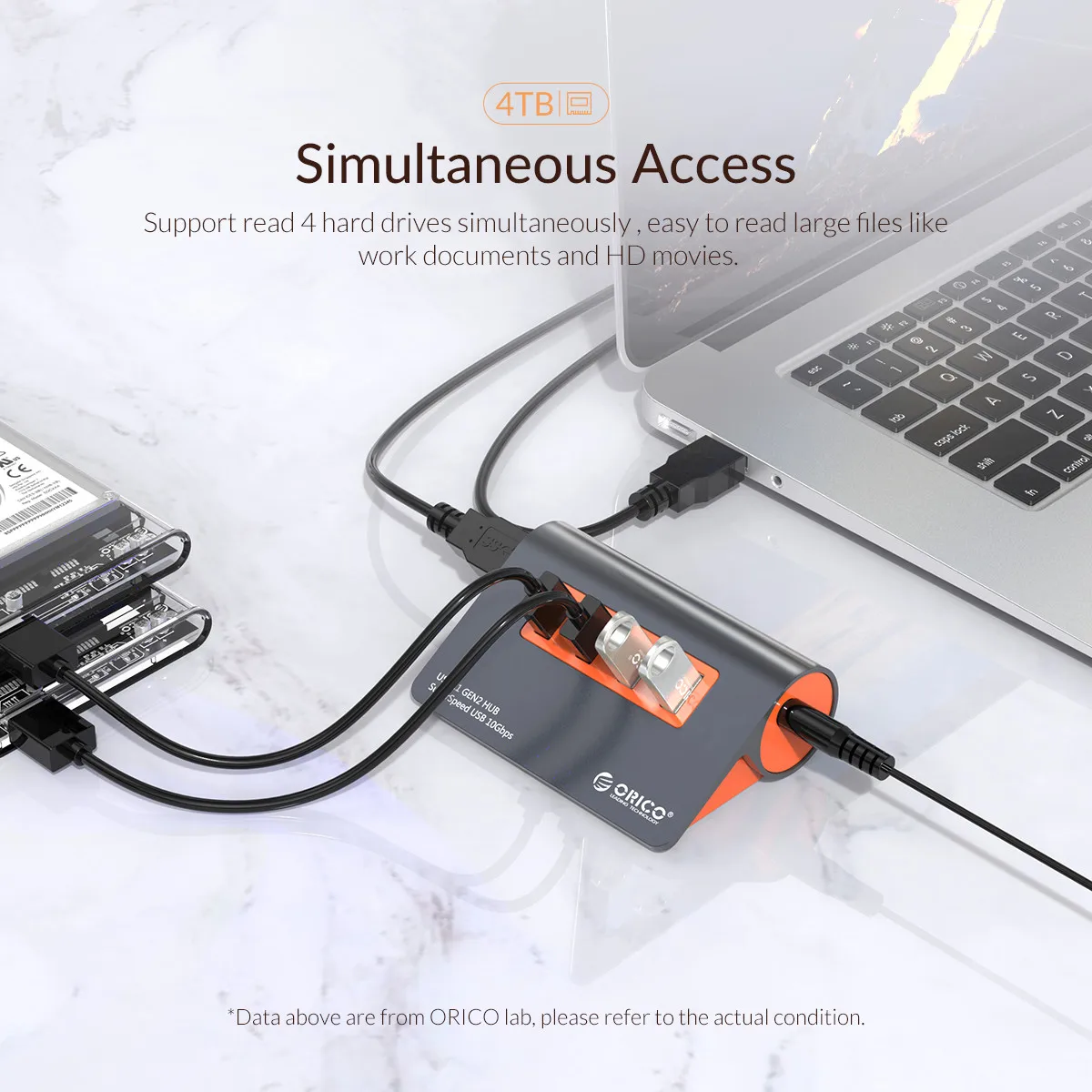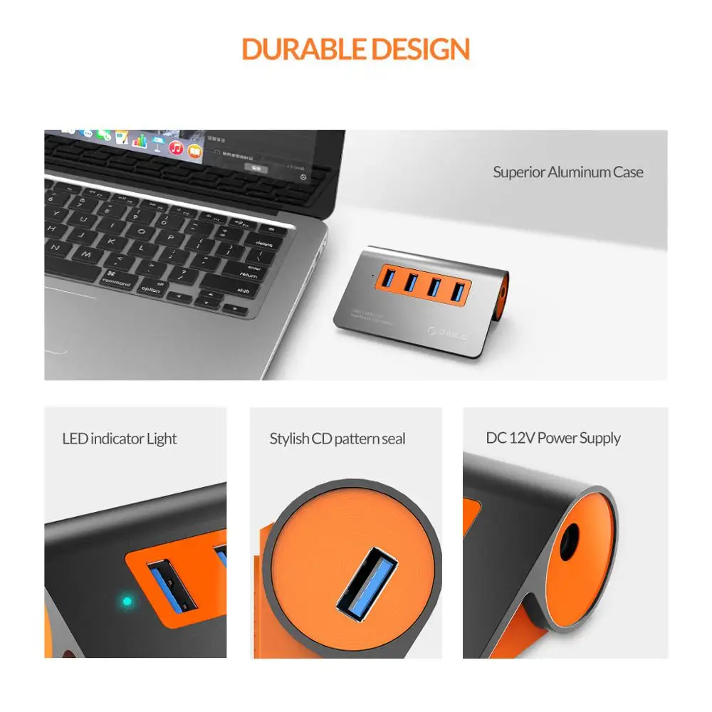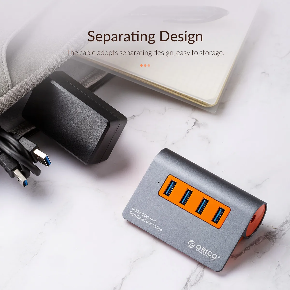 Comprar ORICO-HUB USB 3,2 de 10Gbps, divisor de aluminio PD60W tipo C OTG con adaptador de corriente de 24V para MacBook PC, Accesorios de ordenador
