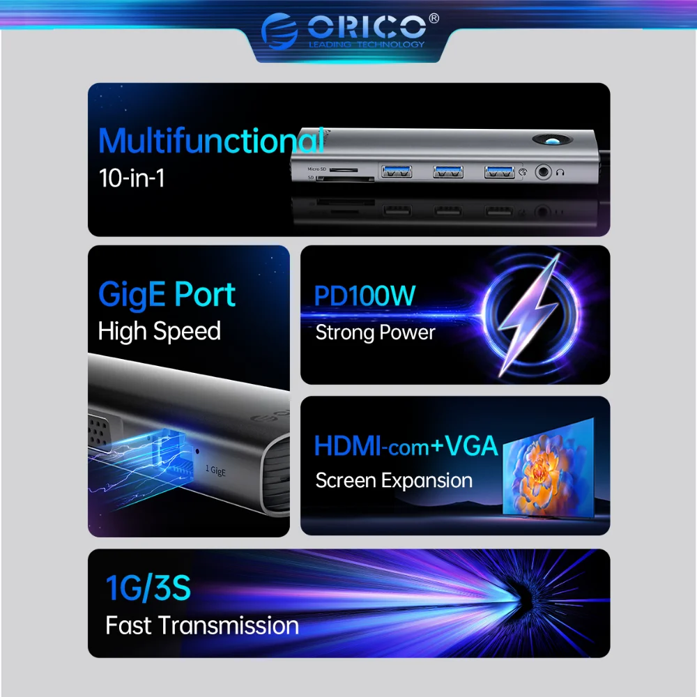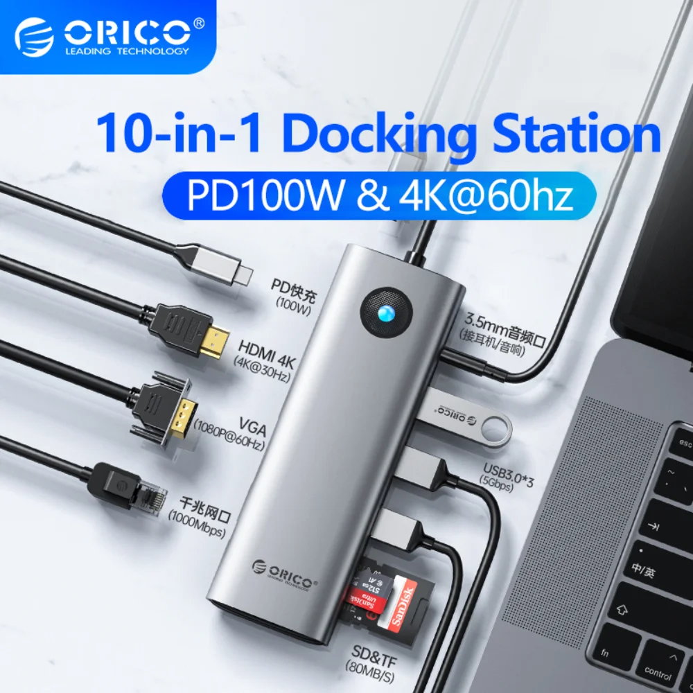 Comprar ORICO-HUB USB tipo C 4K 60Hz a HDMI 2,0 RJ45 PD 100W, adaptador para Macbook Air Pro IPad Pro M2 M1, accesorios para PC HUB USB 3,0 hub usb type c adaptador usb a tipo c hub usb c enchufes con puertos usb accesorios pc