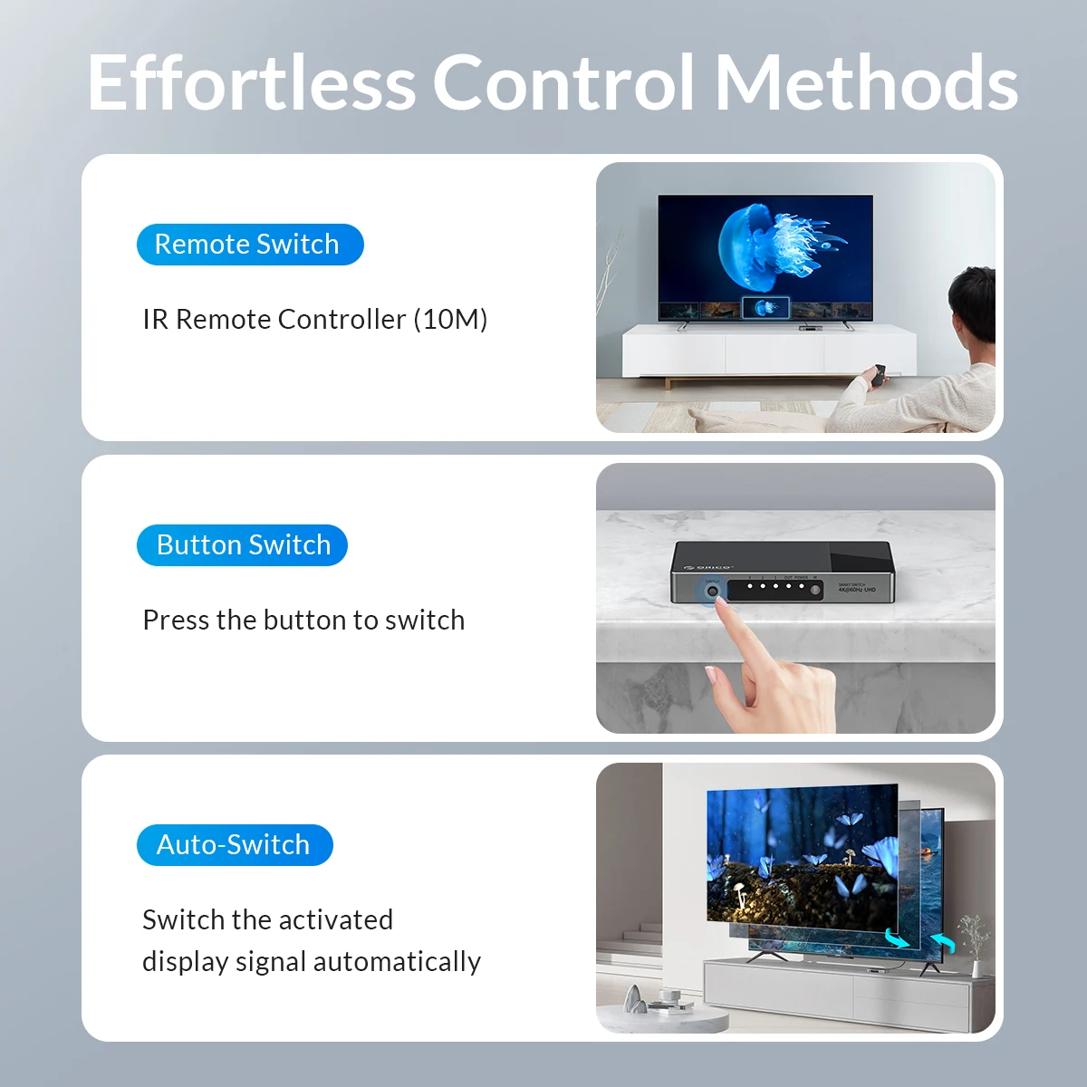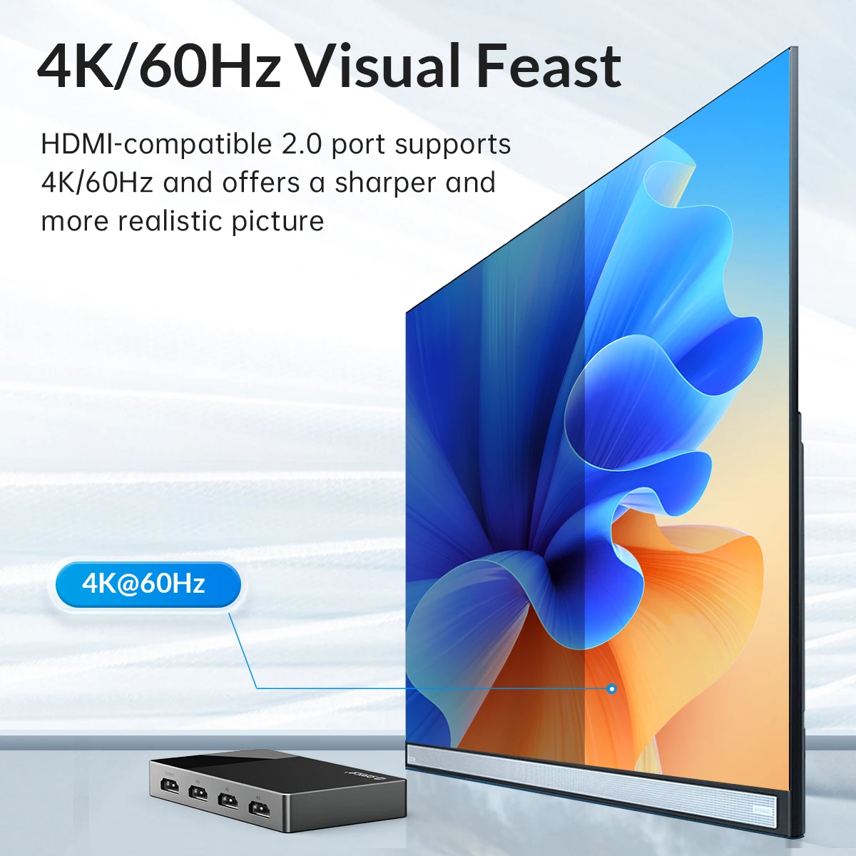 Comprar ORICO-interruptor 2,0 compatible con HDMI, 5 en 1, salida 4k @ 60HZ, convertidor conmutador para TV, PS5, Xbox, PC, Fire Stick con Control remoto IR