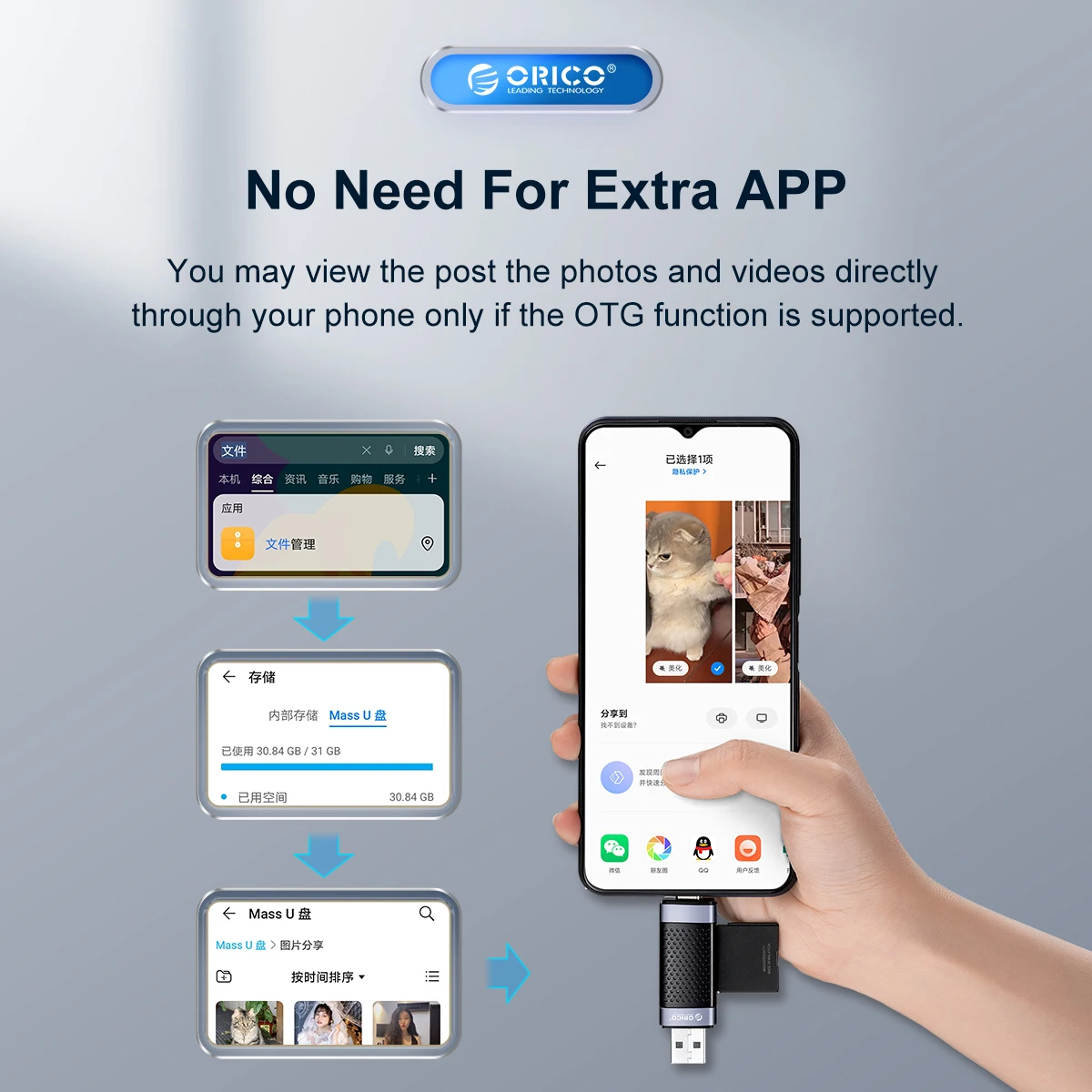 Comprar ORICO-lector de tarjetas USB 3,0 tipo C, accesorio portátil 2 en 1 de tarjetas inteligentes a SDXC, SDHC, MMC, adaptador de tarjetas de memoria para PC y portátil